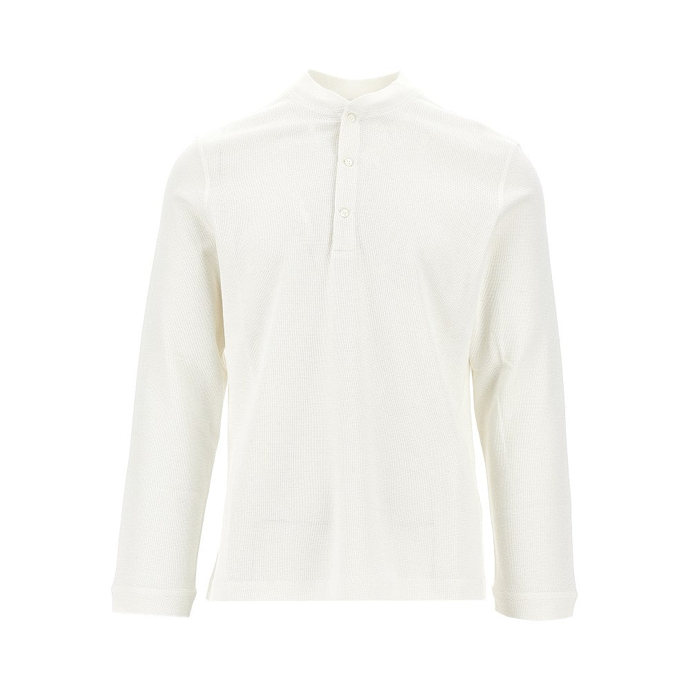T-shirt in cotone e seta con collo Henley