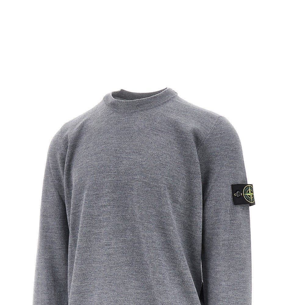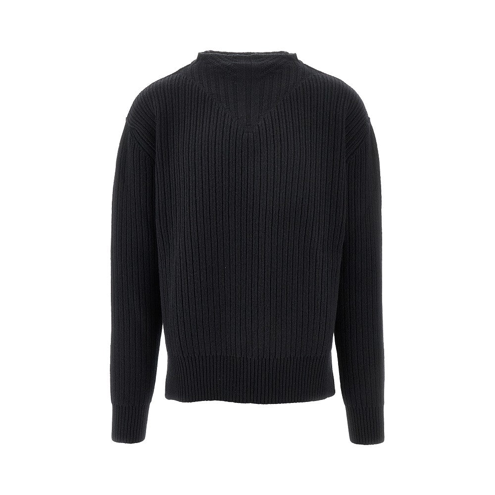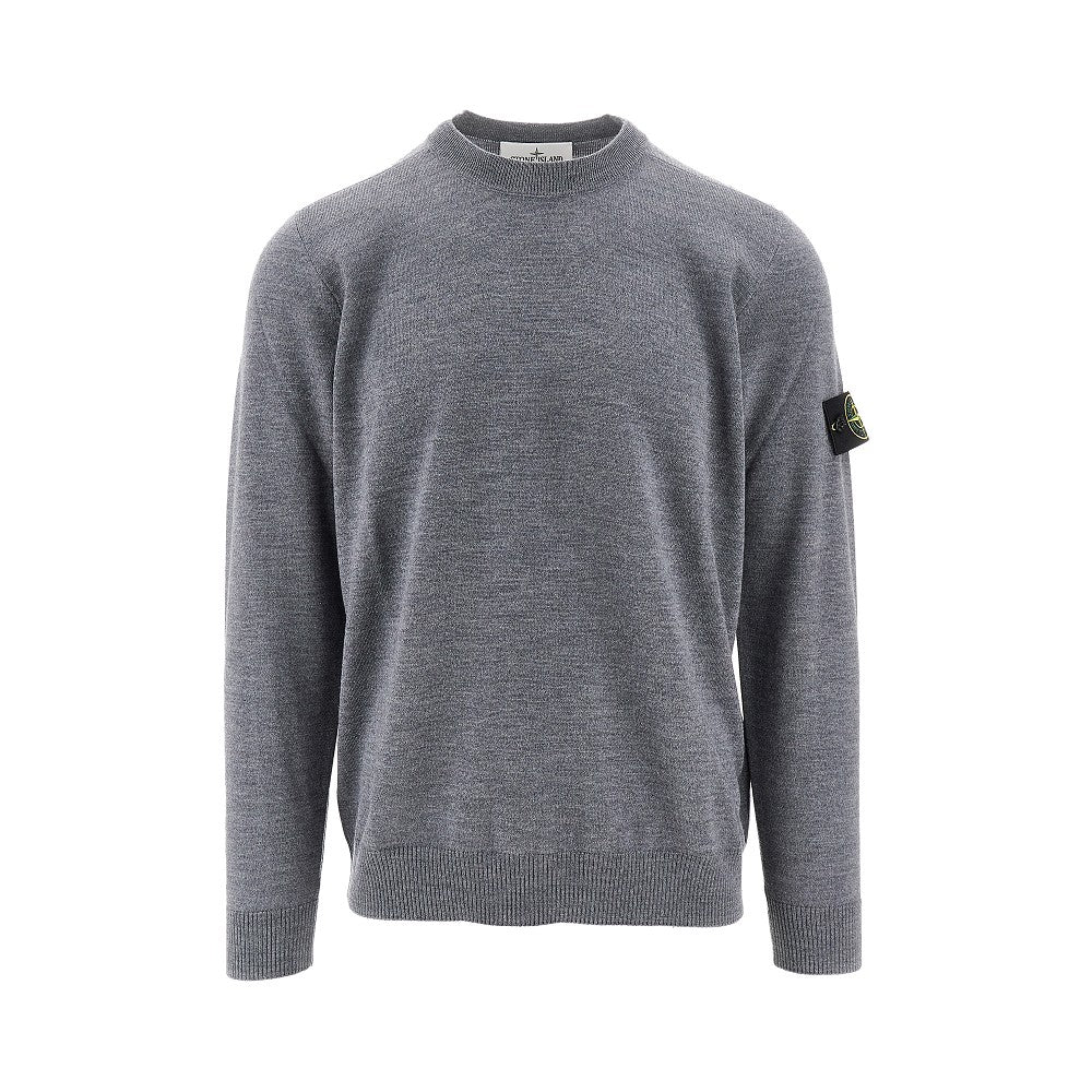 Pullover girocollo in lana con badge logo
