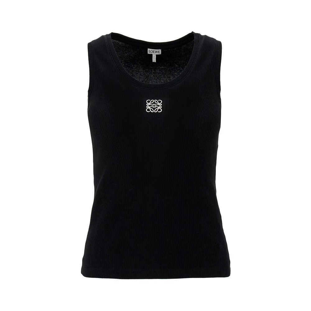 Tank top made from ribbed stretch cotton jersey, enriched with contrasting Anagram embroidery on front. Rounded neckline. Slim fit.