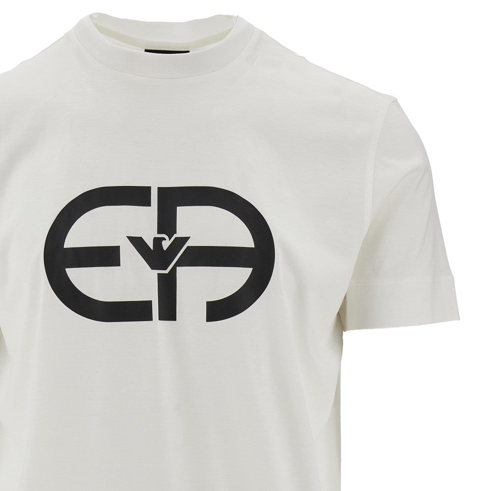 Short-sleeved T-shirt made from lyocell and cotton blend jersey, enriched with contrasting logo print on front. Micro ribbed crewneck. Regular fit.