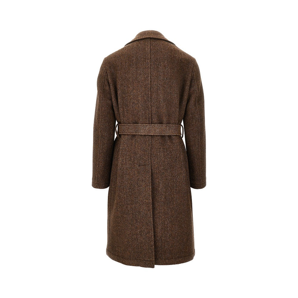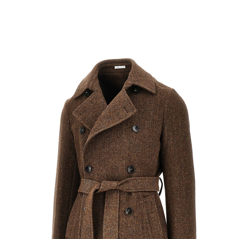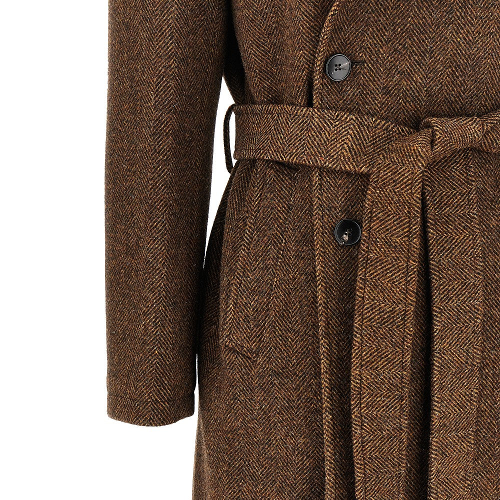 Herringbone wool coat with belt