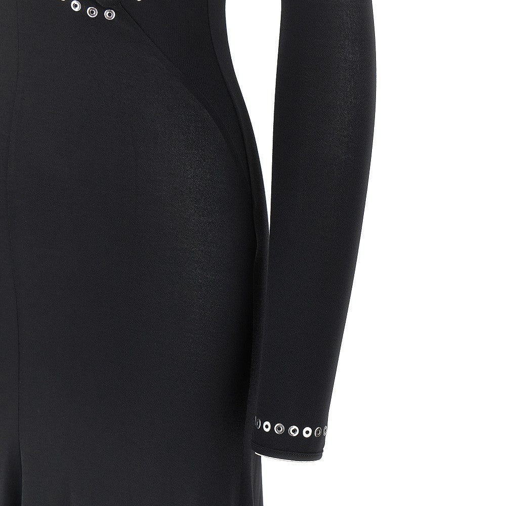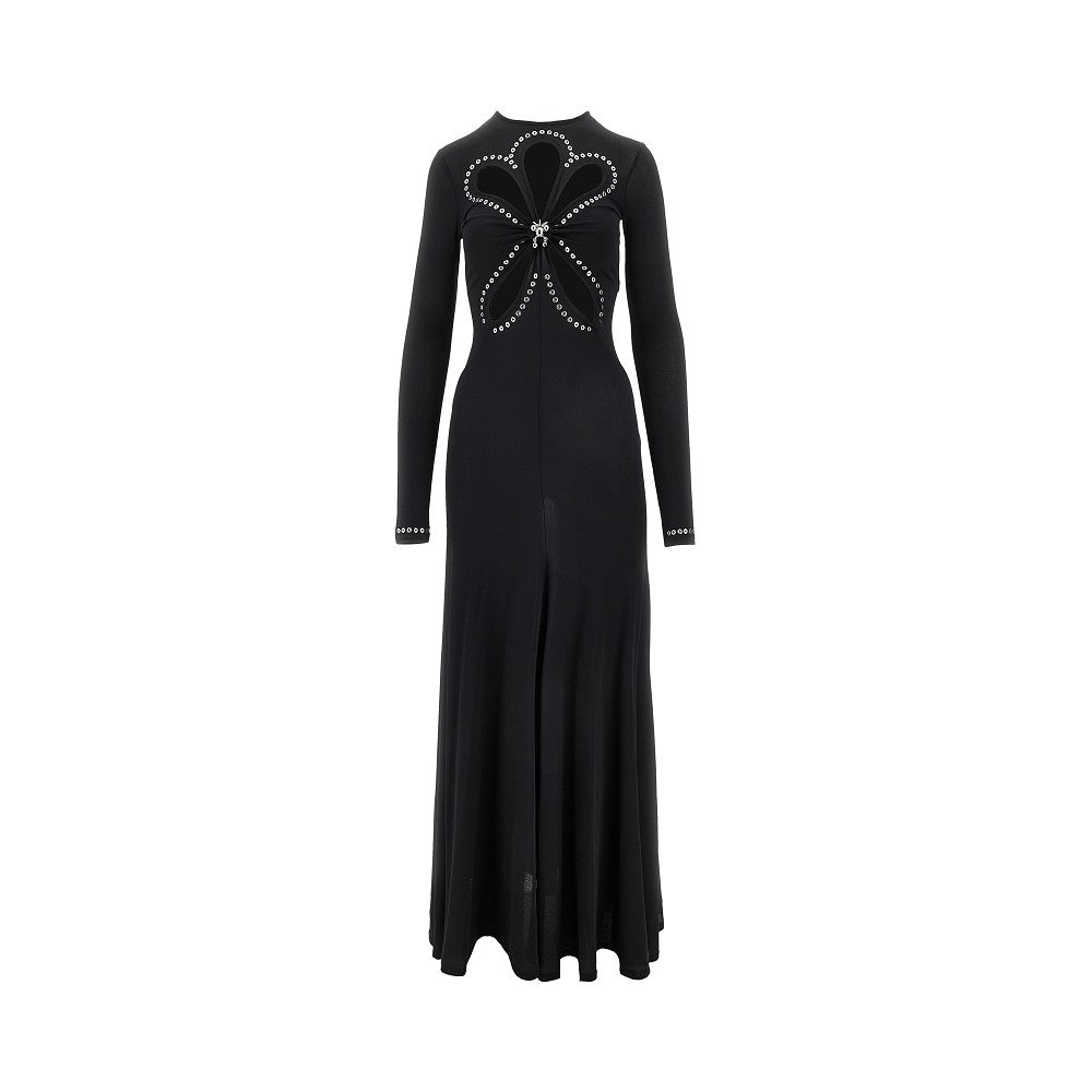 Long dress with cut-out details and eyelets