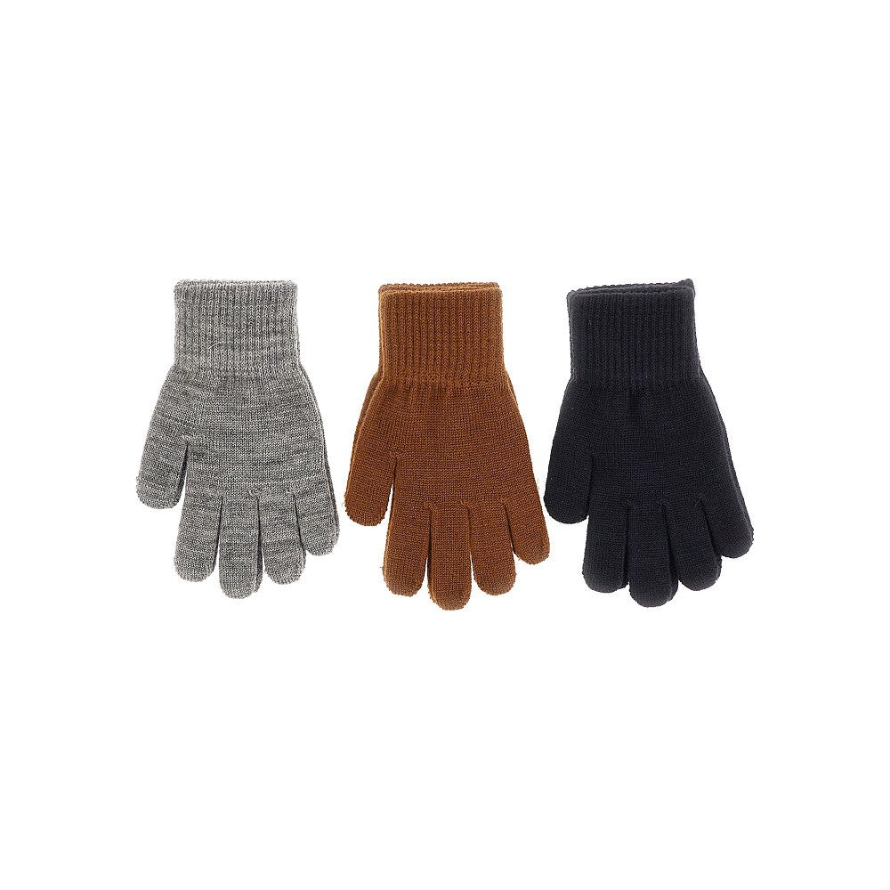 Pack of three gloves in three different colorways made from soft wool-blend yarn, featuring ribbed wrist cuff.