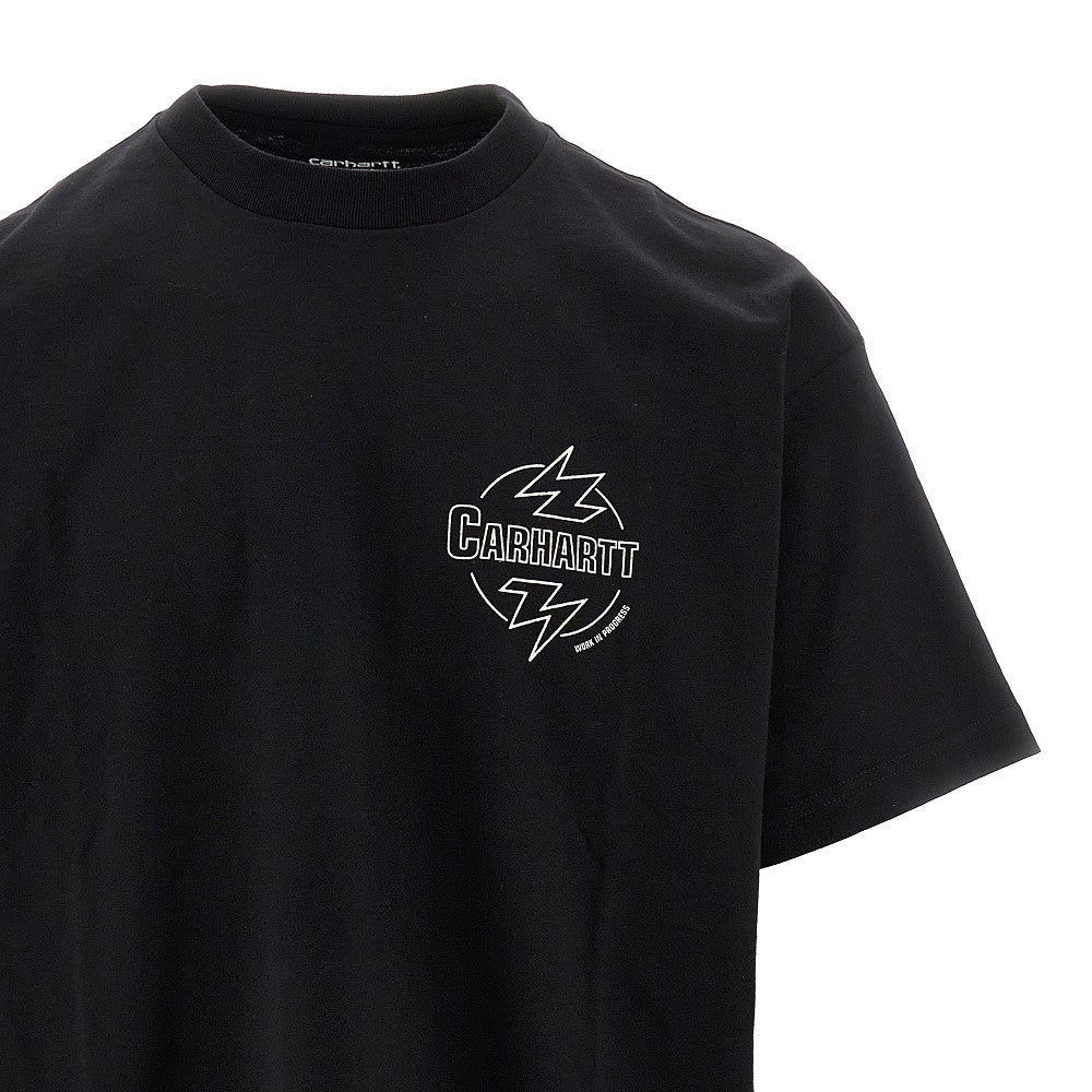 Short-sleeved T-shirt made from organic cotton jersey, enriched with graphic print on the back and logo print on the chest. Micro ribbed crewneck. Regular fit with slightly dropped armholes.