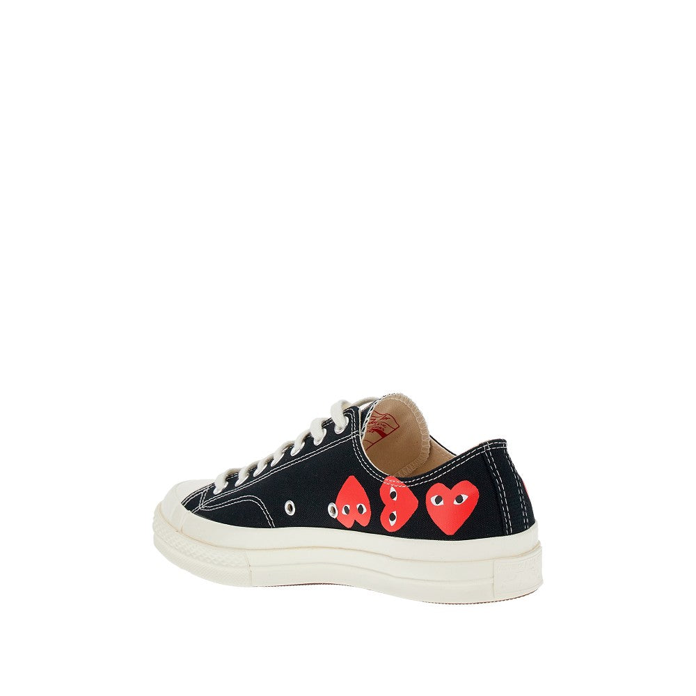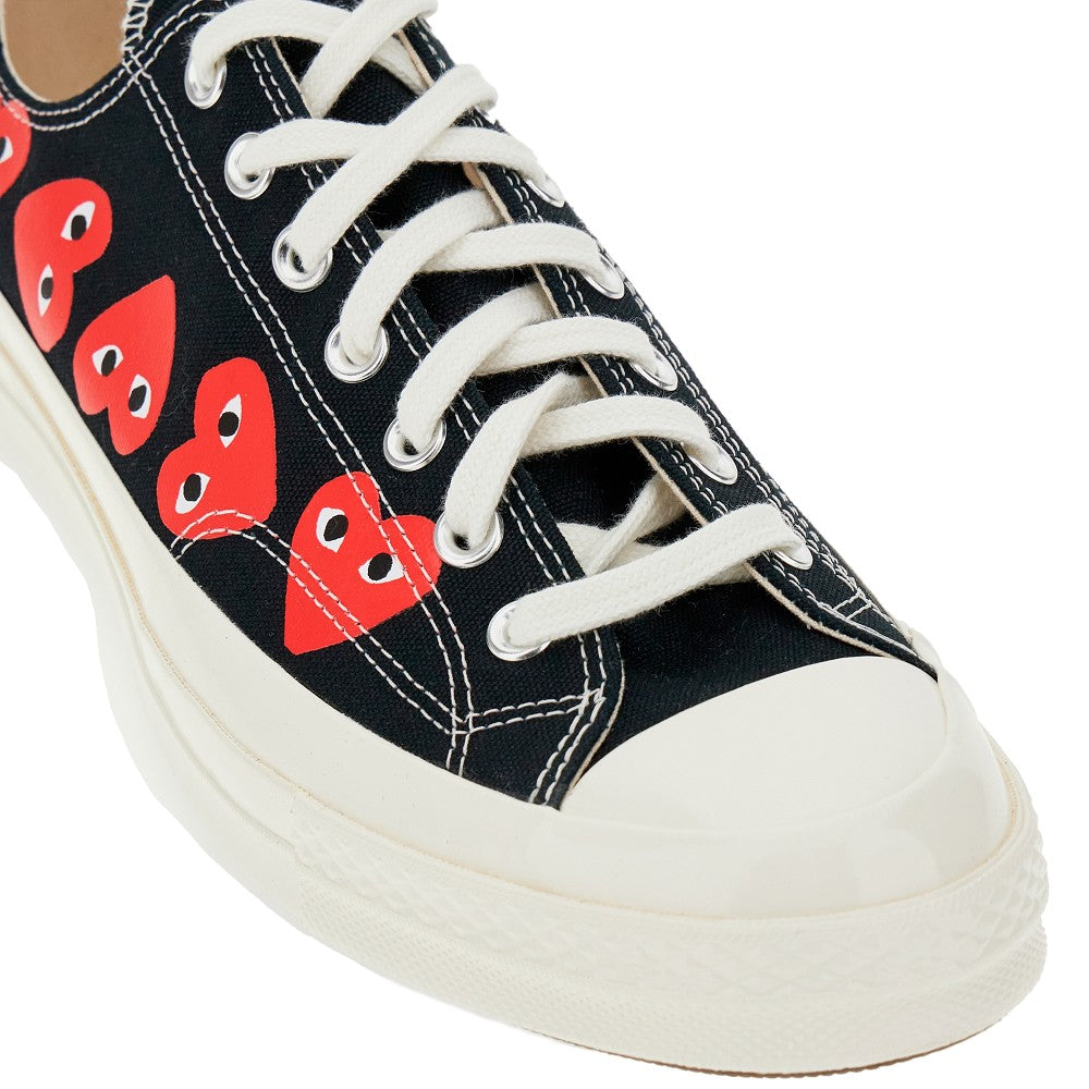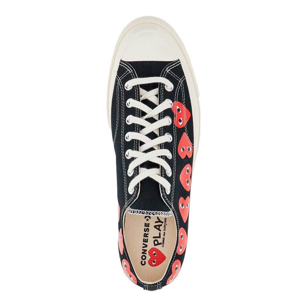 Chuck 70 CDG sneakers made from canvas with hearts logo print on the sides. Lace-up closure and rubber-covered toe. Canvas lining, removable fabric insole and rubber sole.
