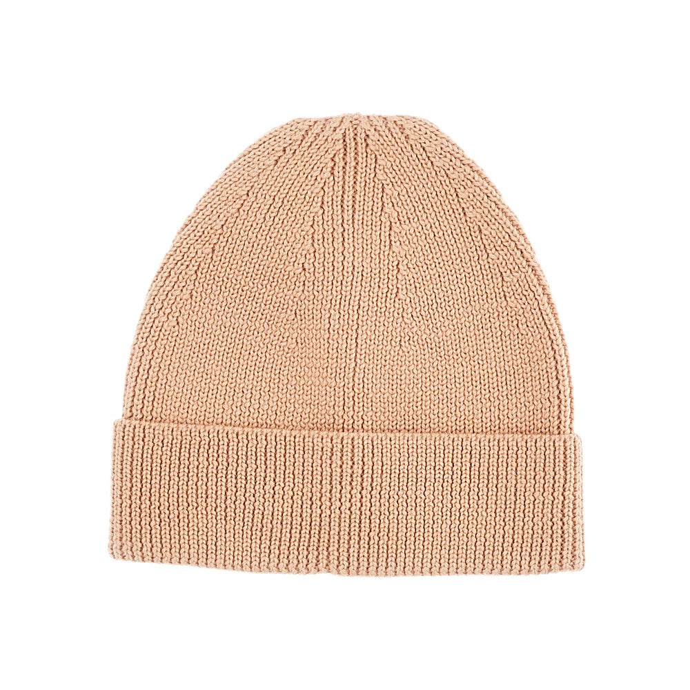 Beanie hat made from mulesing-free merino wool ribbed knit.