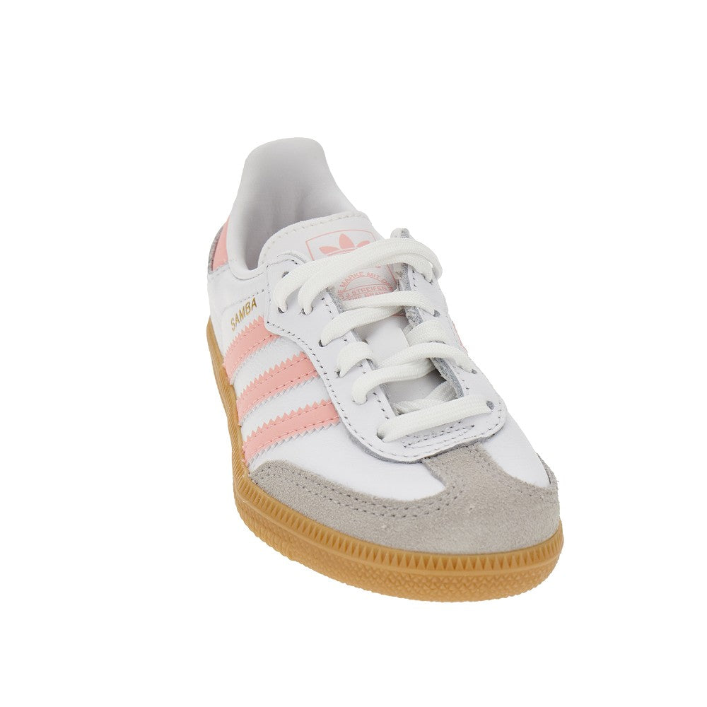 Samba sneakers made from soft leather, featuring contrasting side 3 Stripes patches and heel tab. Suede detail on the toe. Lace-up closure. Removable Ortholite fabric insole. Rubber sole.
