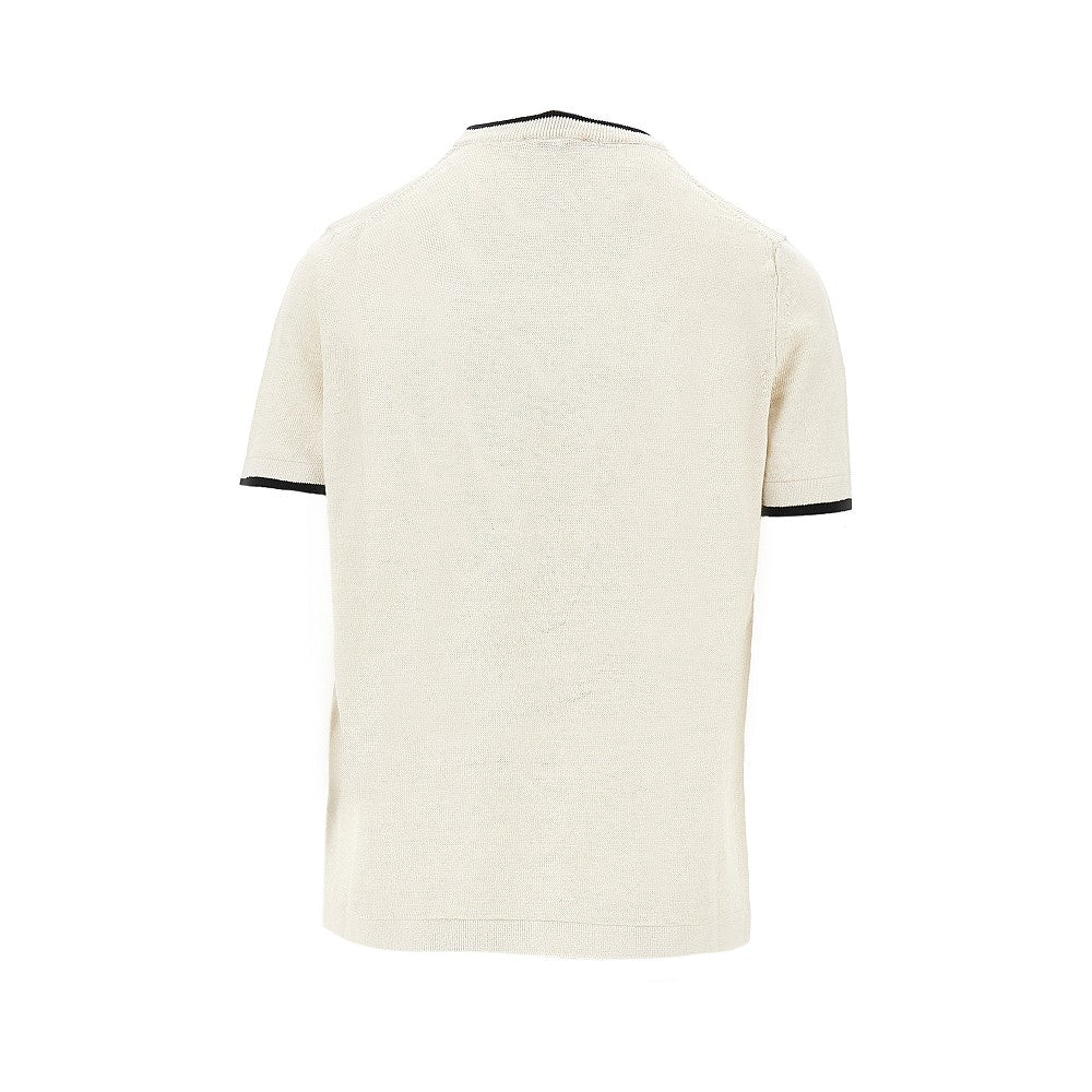 Linen knit T-shirt with logo intarsia