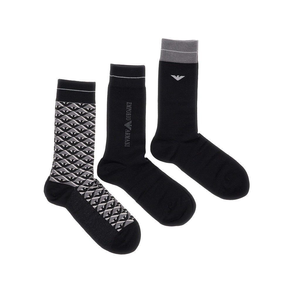 Pack of three pair of socks made from stretch cotton-blend jersey with micro ribbed trim. Two plain coloured ones with jacquard lettering logo and Eagle motif on the sides. One pair with all-over jacquard Eagle pattern.