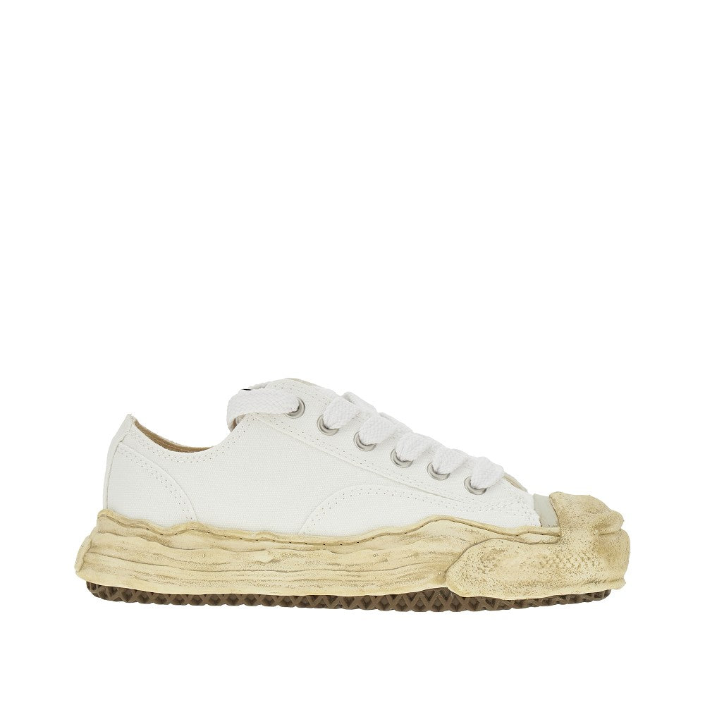Hank sneakers made from cotton canvas, featuring silicon coating on the base modeled on the original clay sole made by the design MIHARA. Lace-up closure and fabric logo label on the tongue. Canvas lining and insole. Rubber sole.