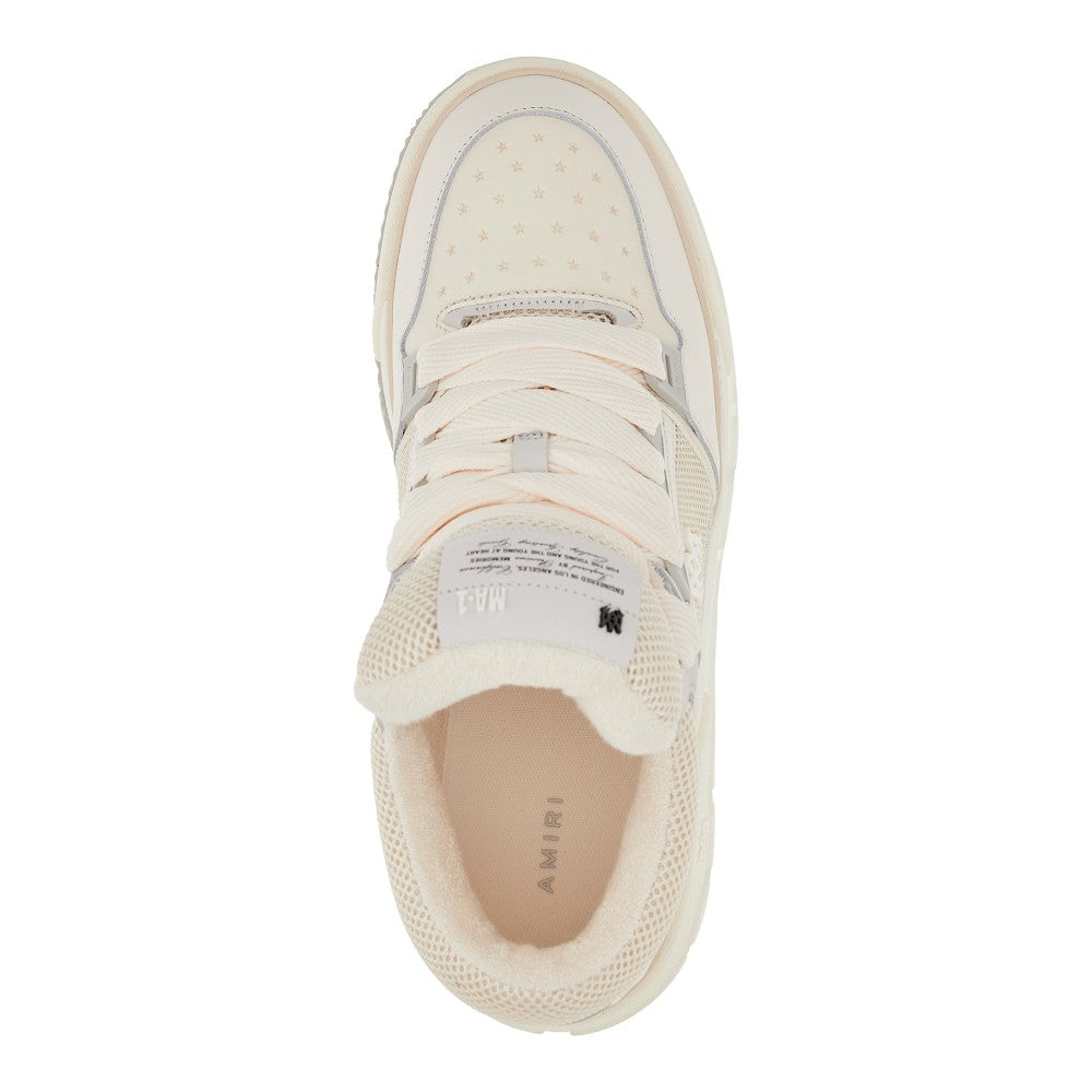 MA-1 sneakers made from mesh and leather, enriched with plastic logo on the outer side and embossed lettering logo on the back. Star-shaped perforations on the toe, lace-up closure and padded tongue. Terry lining, removable fabric insole and rubber sole.