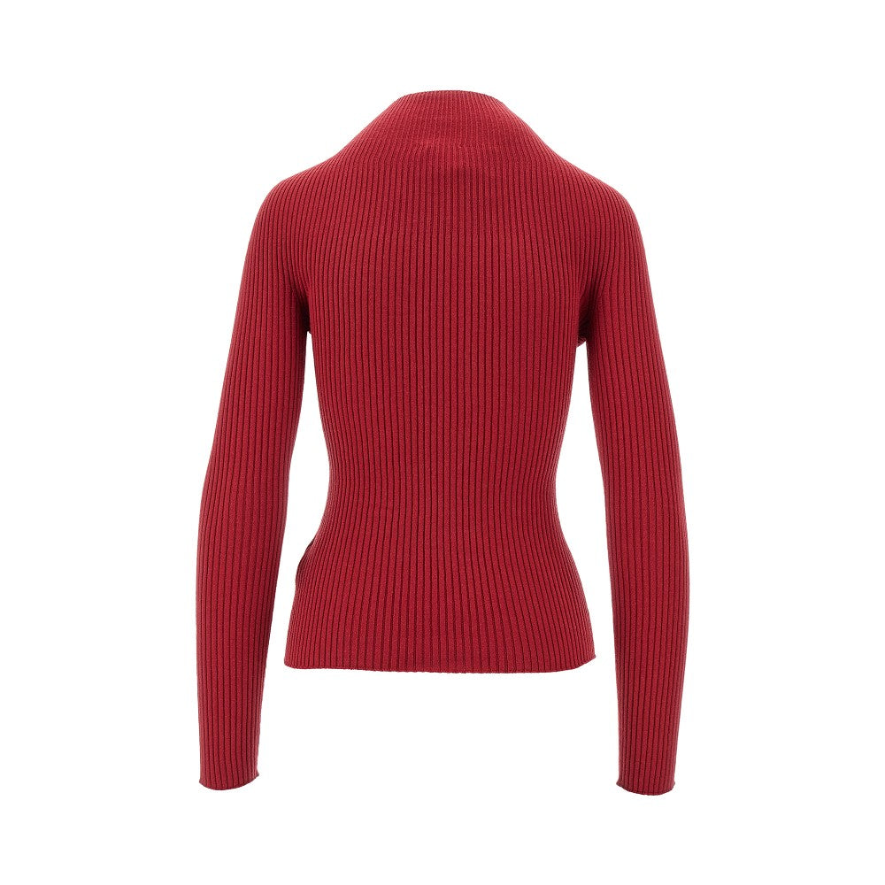Mock-turtleneck sweater made from cotton and merino wool blend ribbed knit, enriched with tone-on-tone logo patch embroidered at front. Slim fit.