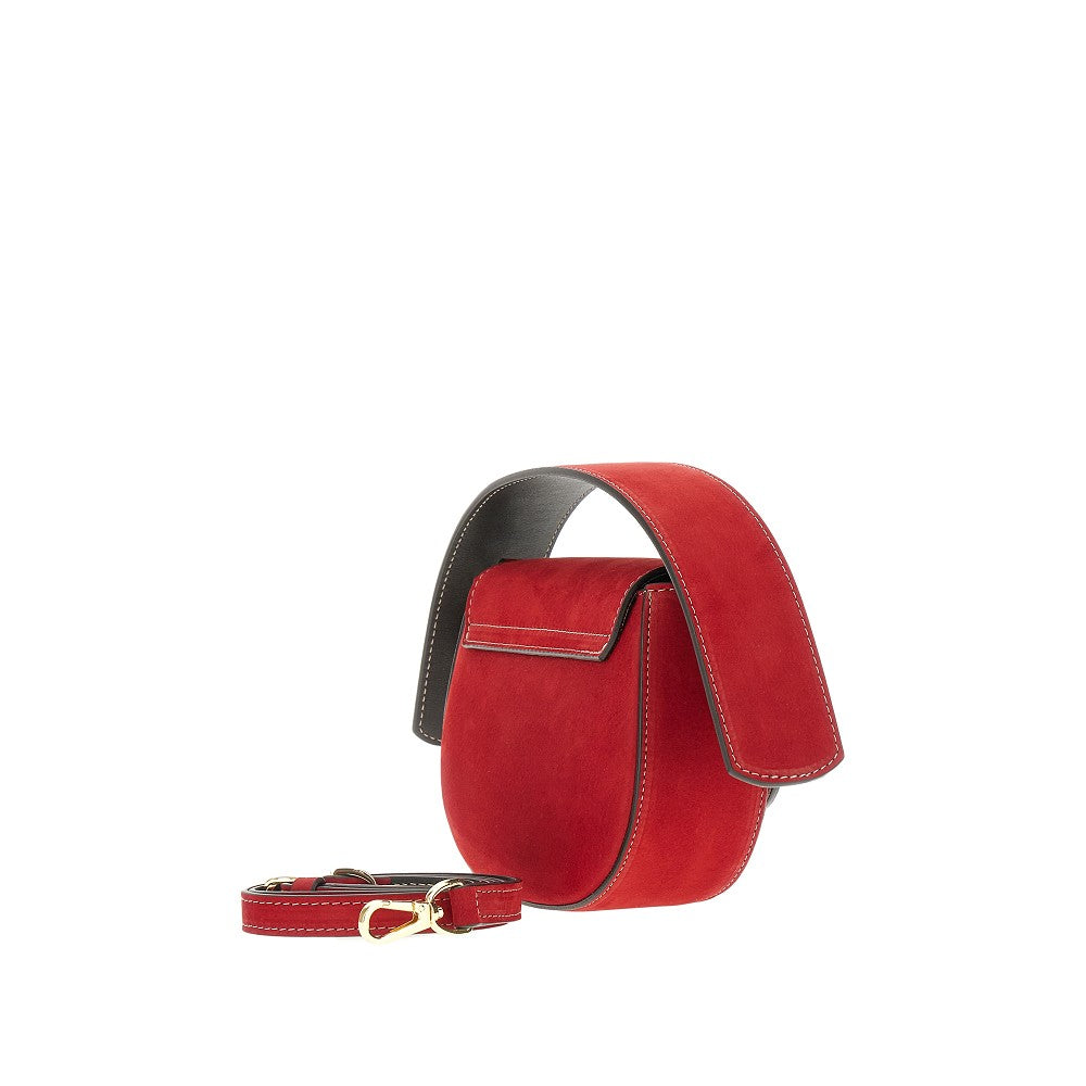Mini bag made from natural grain Nubuck leather, enriched with gold-tone logo print on front. Equipped with both detachable handle and adjustable shoulder strap. Magnetic flap. Twill lining and one inner patch pocket.