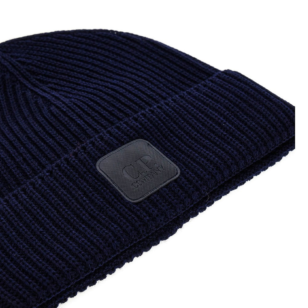 Beanie hat made from extrafine merino wool ribbed knit, enriched with rubberized logo patch on the cuff front.