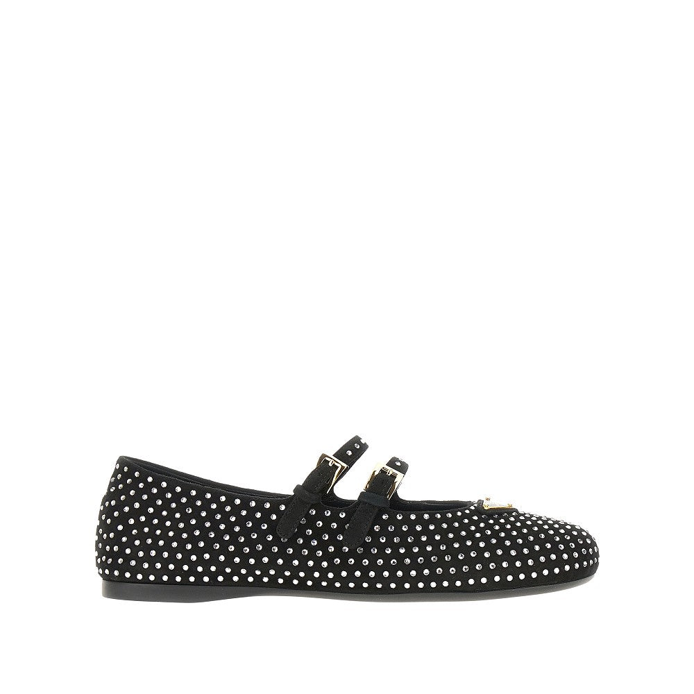 Suede leather ballet flats with rhinestones
