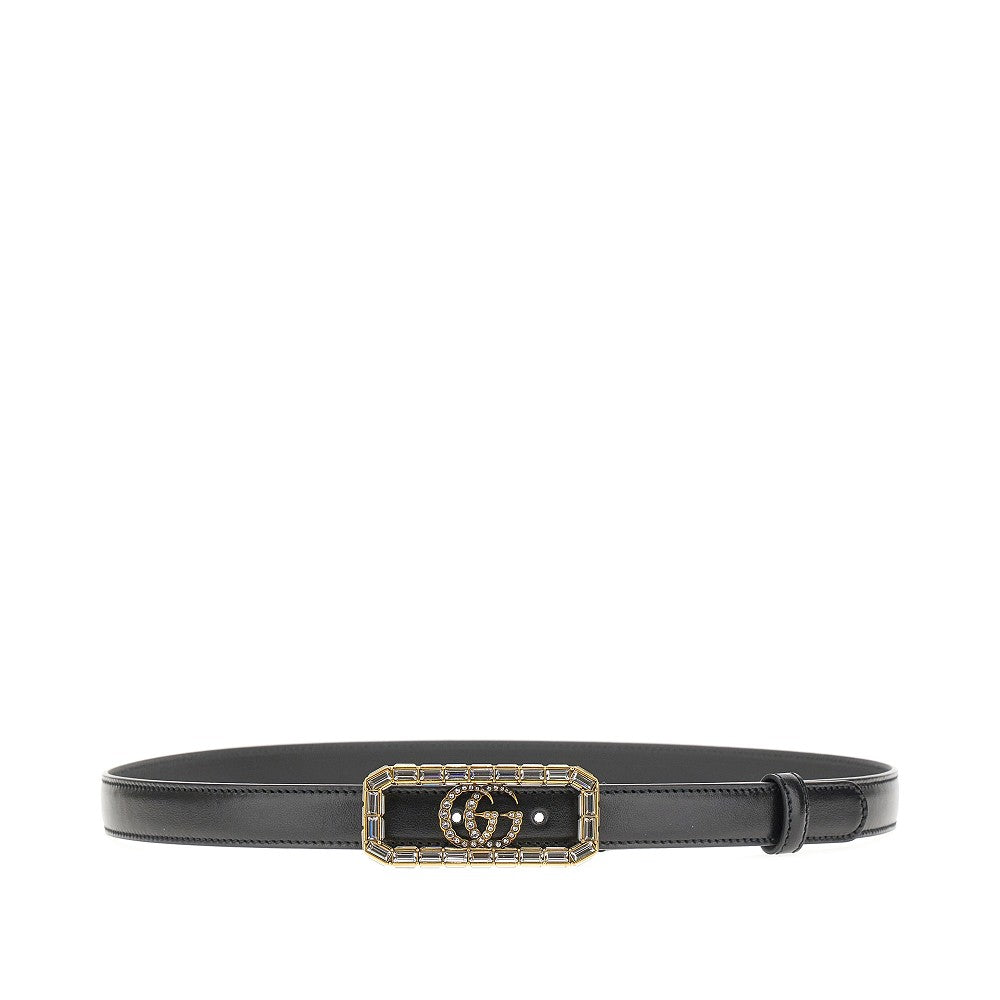 Leather belt with Crystal Double G buckle