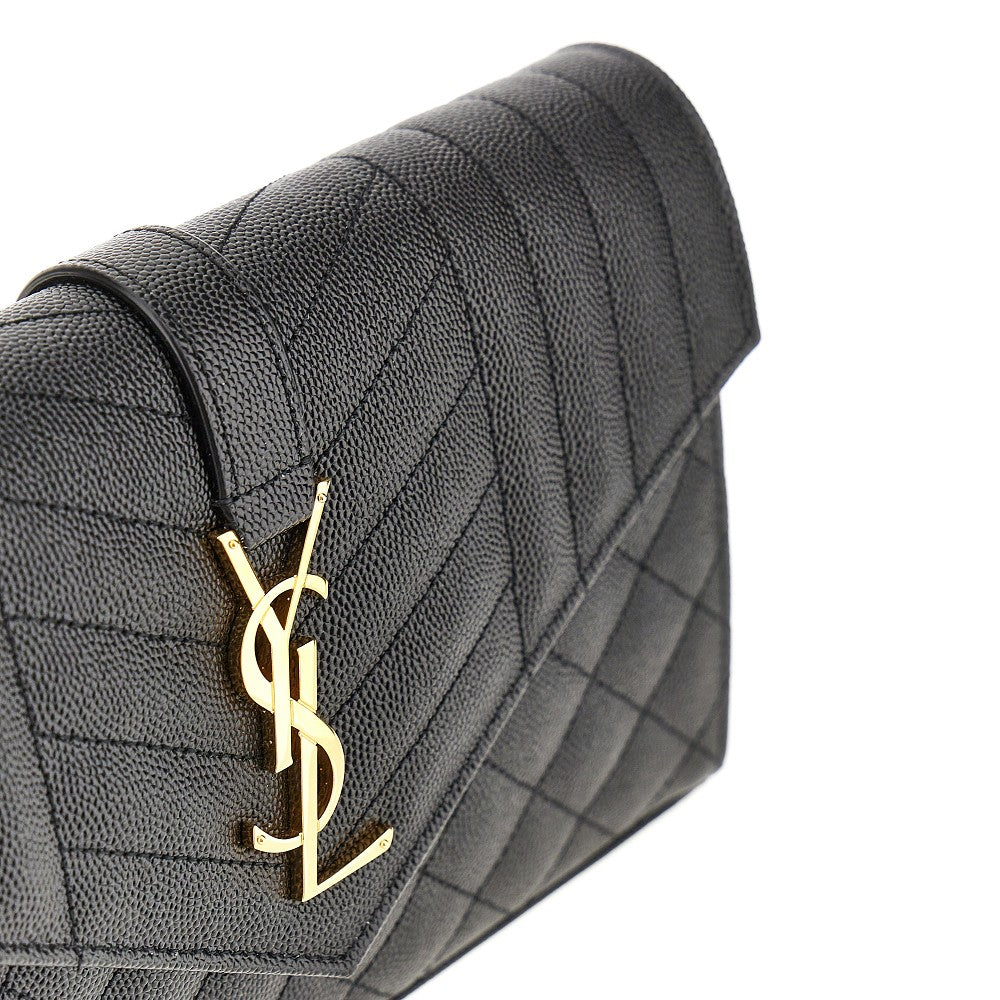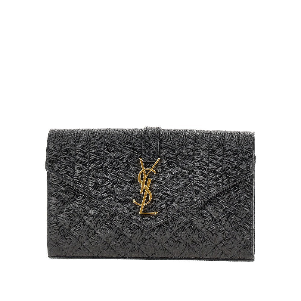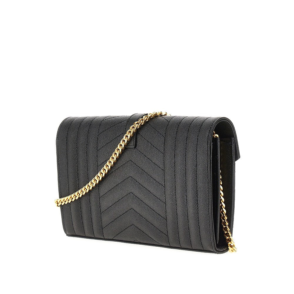 Grained leather clutch with chain