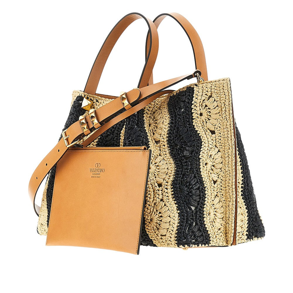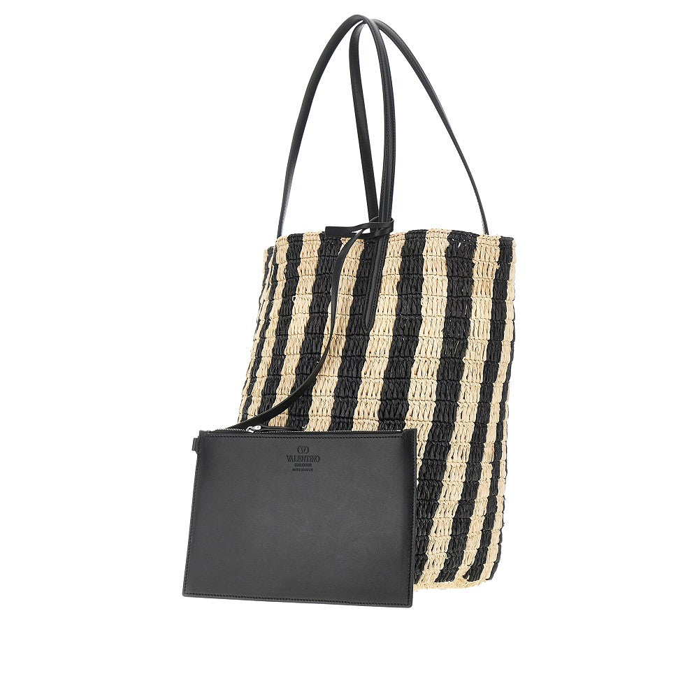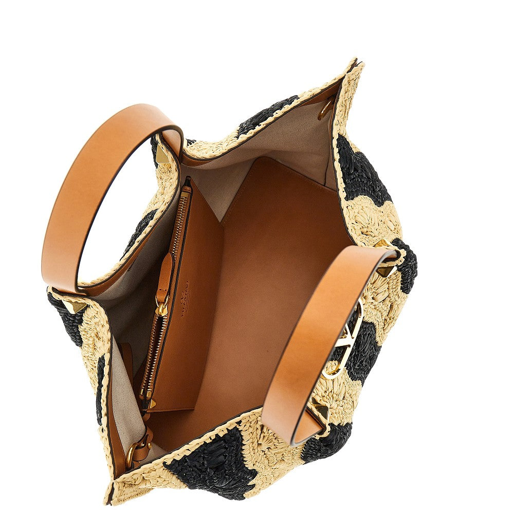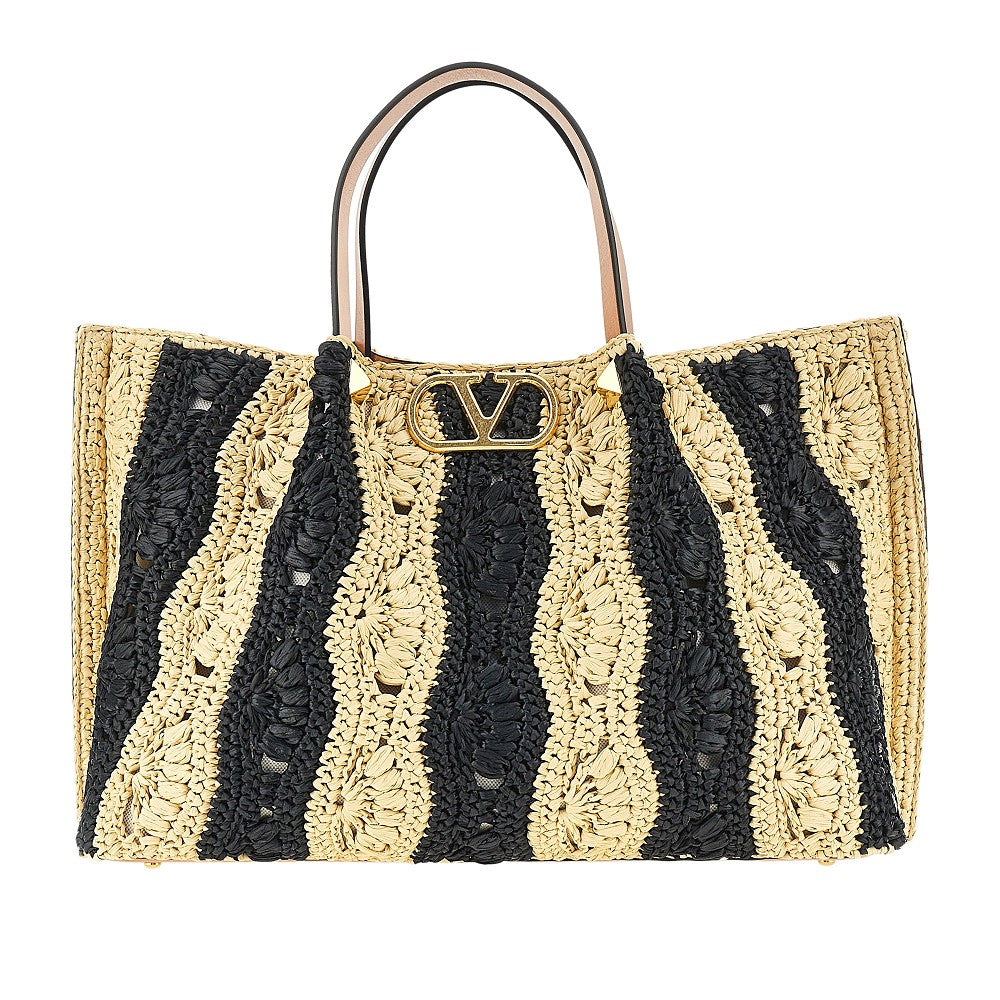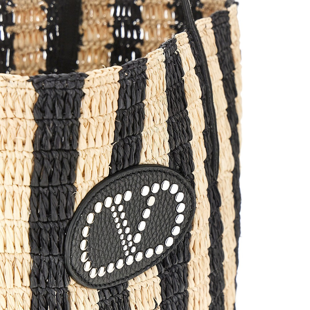 VLogo Signature patch raffia shopping bag