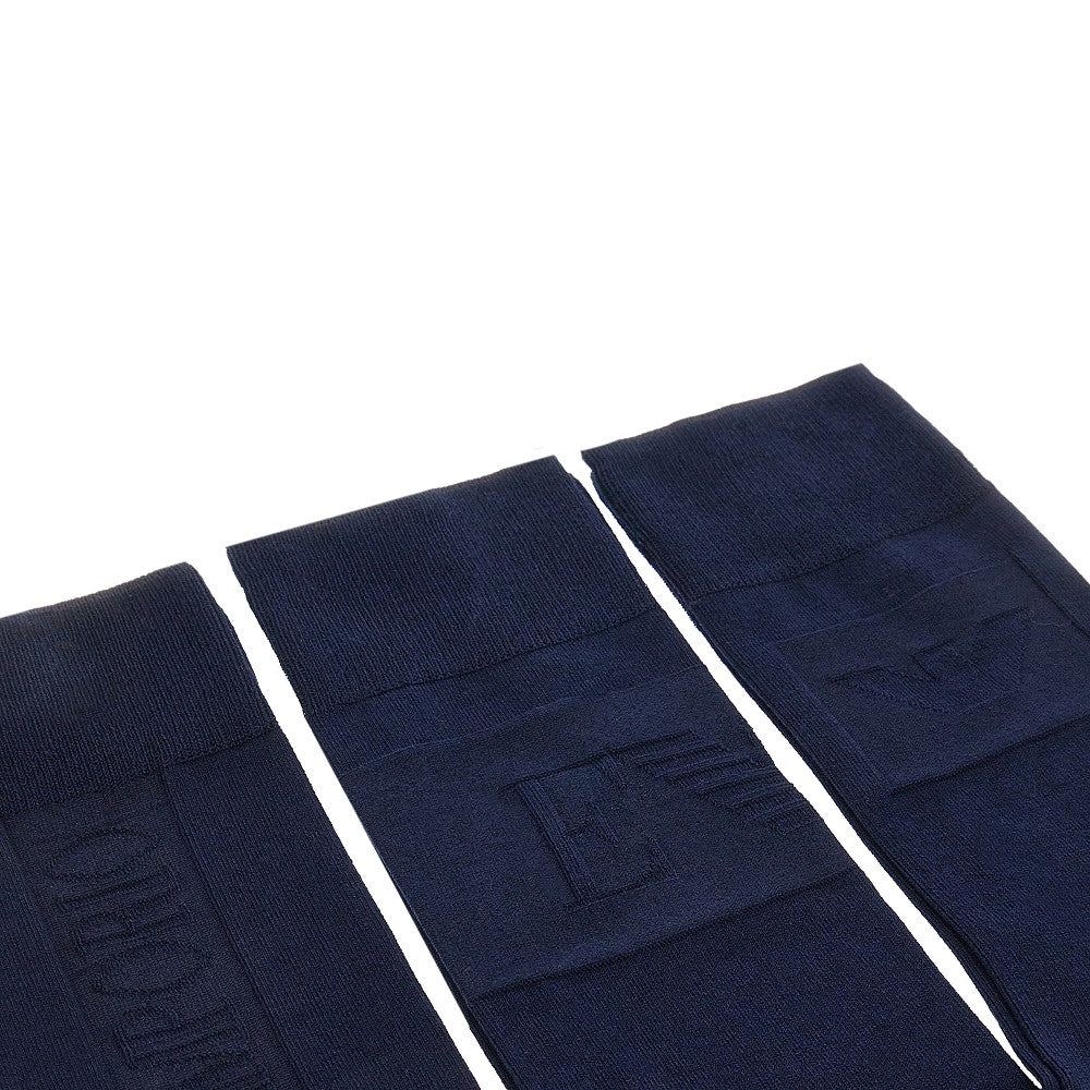 Pack of 3 pair of socks made from lightweight stretch cotton-blend yarn, enriched with jacquard tone-on-tone three different logo motifs on the leg. Micro ribbed edges.