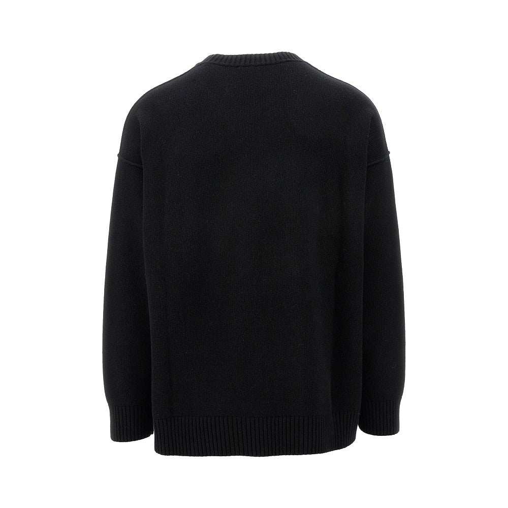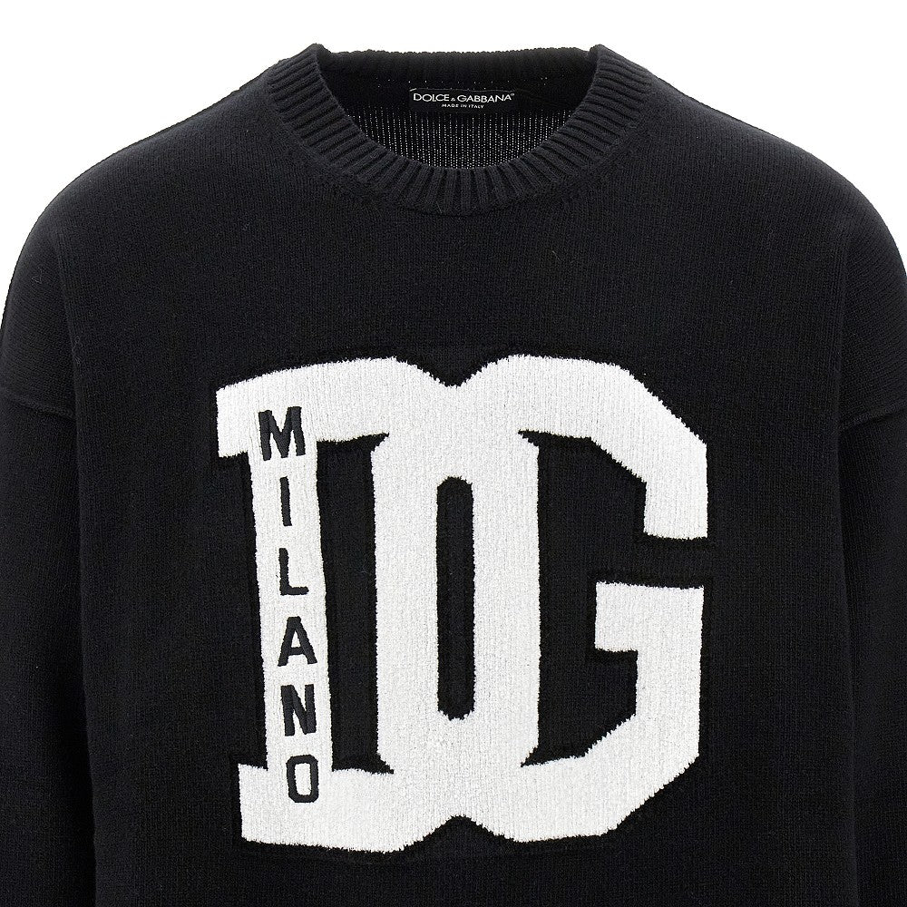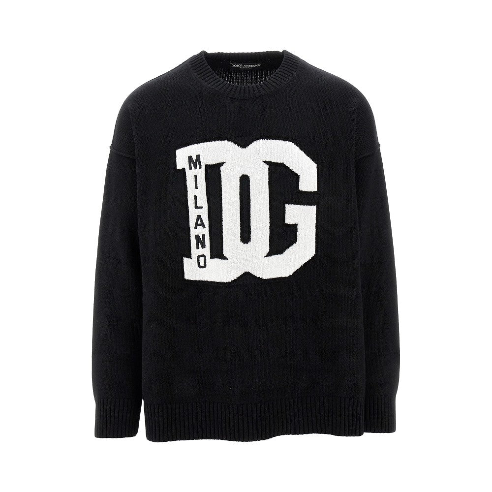 Sweater made from virgin wool yarn with exposed seams, enriched velvet-touch contrasting DG logo inlay at front. Ribbed crewneck, cuffs and bottom hem. Relaxed fit with dropped armholes.