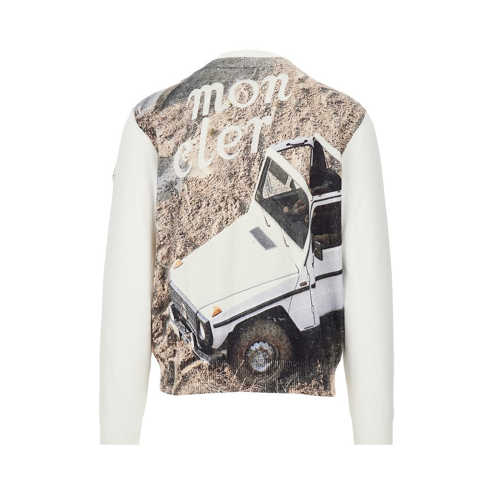 Sweater made from pure cotton yarn, enriched with maxi print on the back. Ribbed crewneck, cuffs and bottom hem. Moncler x Mercedes logo patch on the left sleeve. Regular fit.