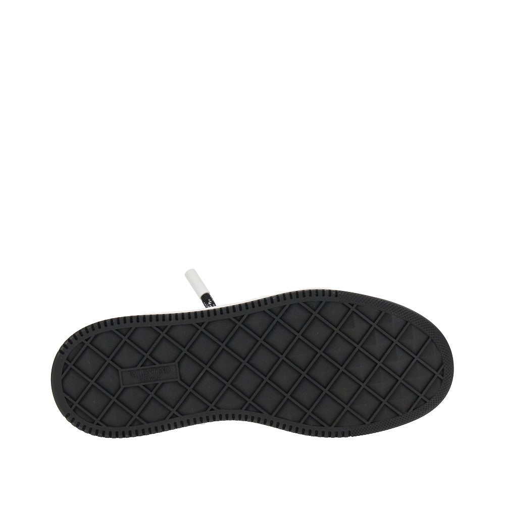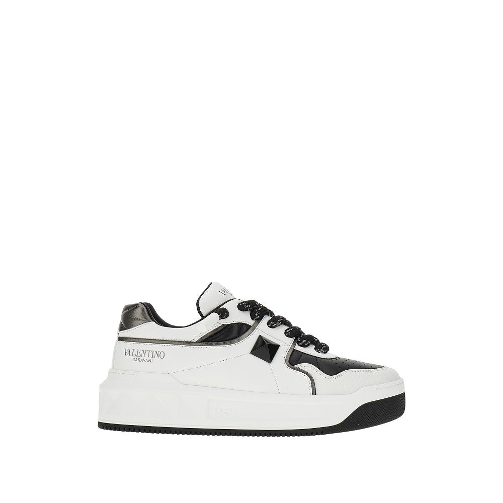 Sneakers made from two-tone soft leather with openworked motif on the toe and metallized leather details, enriched with maxi stud detail on the side. Tubular maxi laces closure. Mesh and leather lining, removable leather insole and rubber flatform sole with debossed maxi stud motif.
