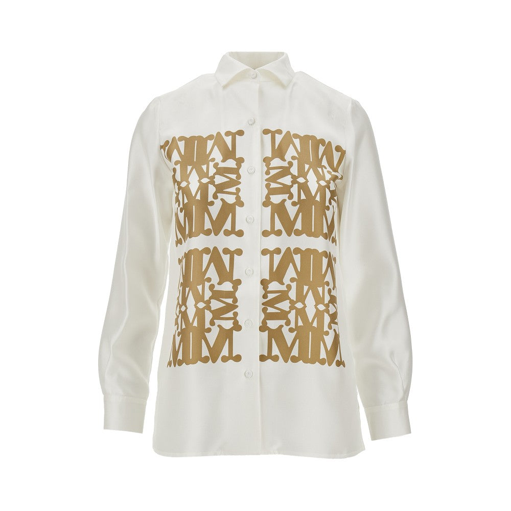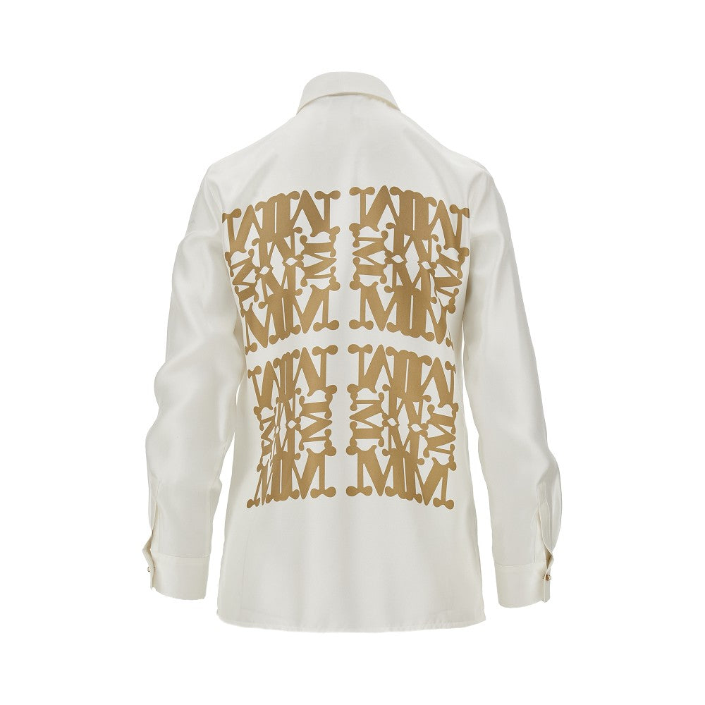Shirt made from pure silk twill, enriched with MaxMarabesque print on front and back. French collar, front closure with twill-covered buttons, cuffs with enameled button and side splits at bottom. Straight and regular silhouette.