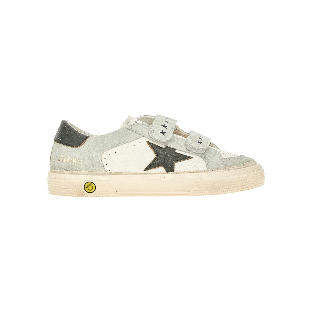 Sneakers made from grained leather with suede leather details, featuring side star patch and heel tab in contrasting leather. Double velcro strap closure with stars print. Terry fabric lining, removable leather insole and rubber sole.