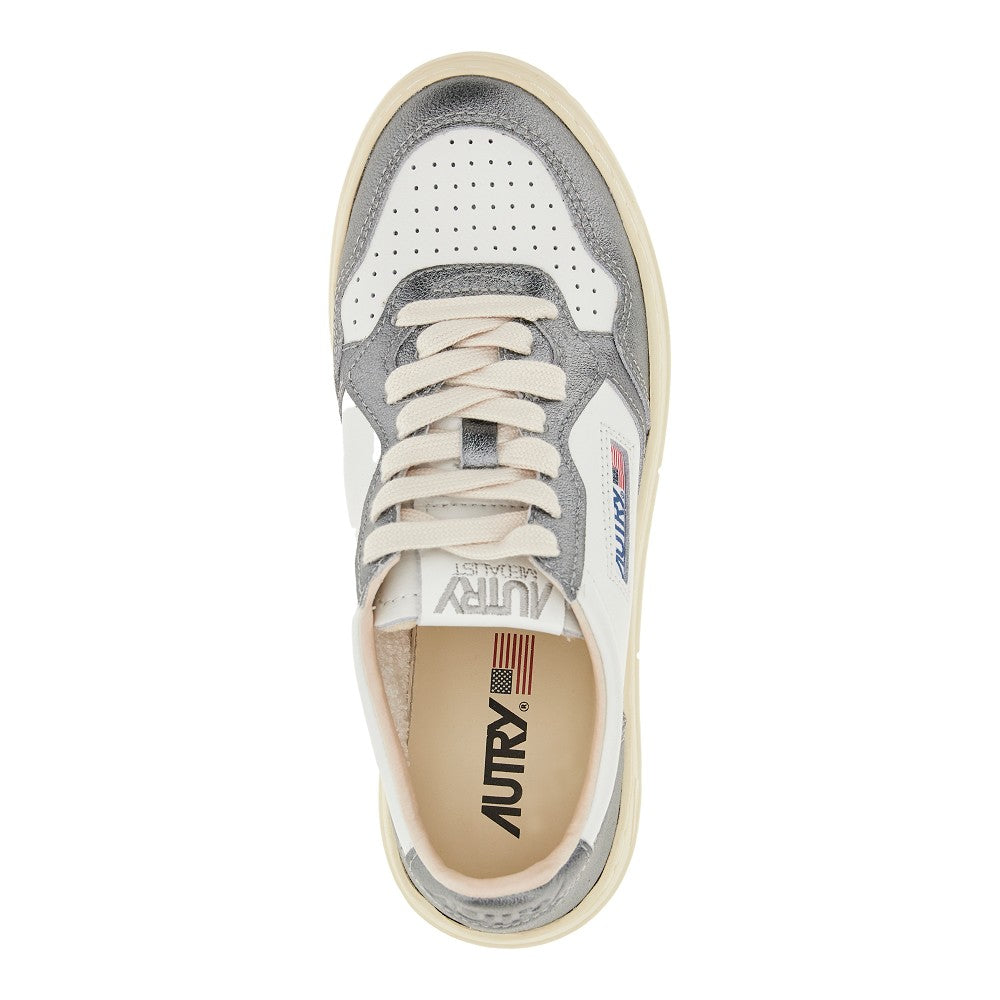 Medalist Low sneakers made from soft leather with contrasting metallized grained leather details. Debossed logo on the heel tab, fabric logo inlay on the side, perforated toe and logo embroidery on the tongue. Terry fabric lining, removable leather insole and rubber sole.