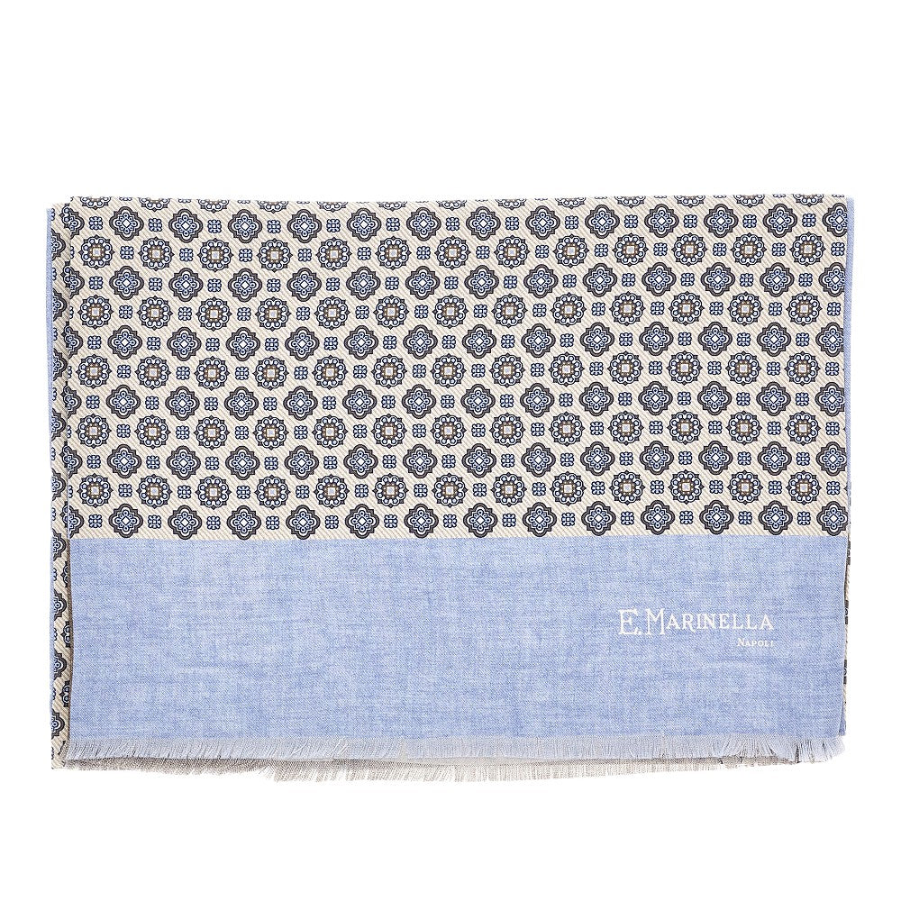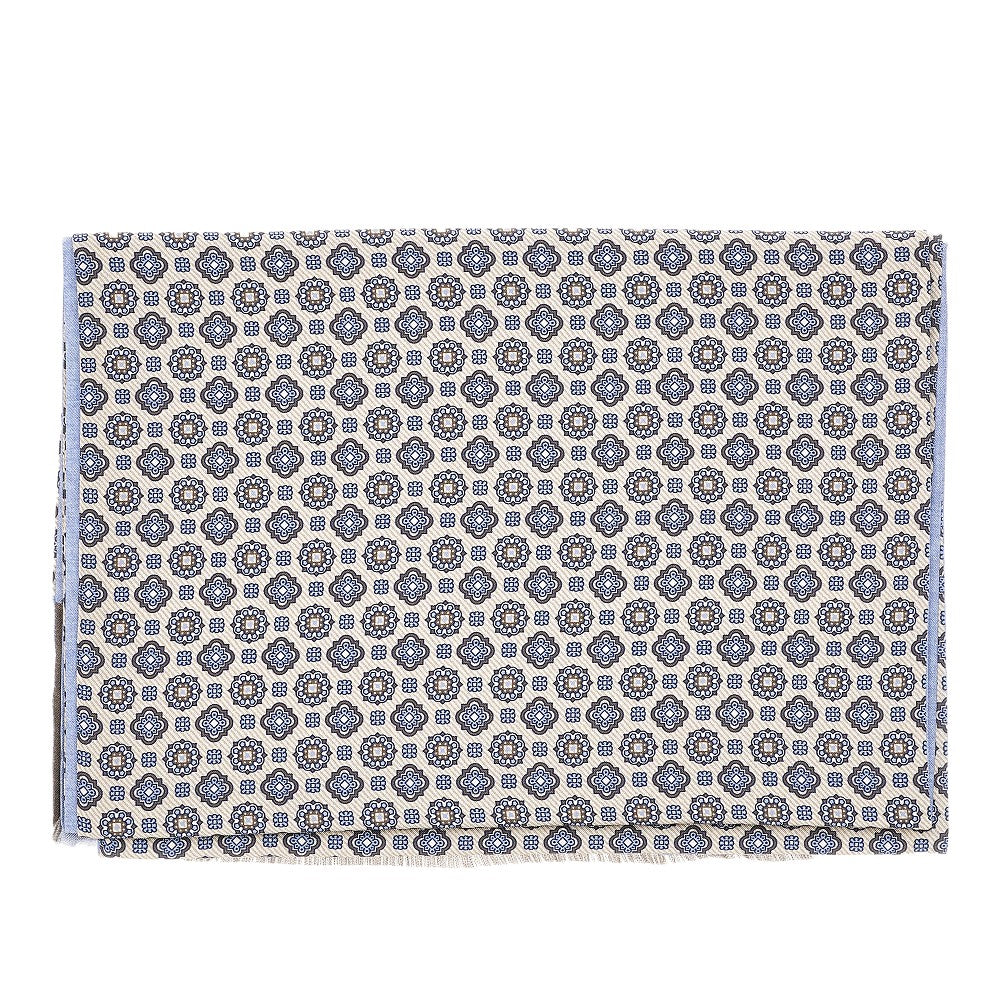 Double-face tubular scarf made from pure silk twill, featuring a plain coloured side and a jacquard pattern on the other one. Frayed ends.