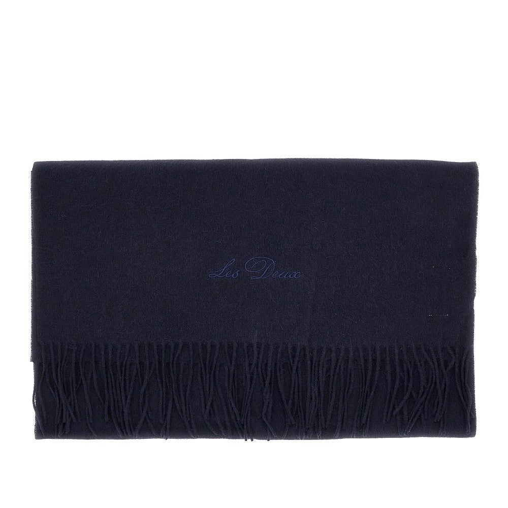 Scarf made from pure wool soft fabric, enriched with tone-on-tone signature embroidery. Fringed ends.