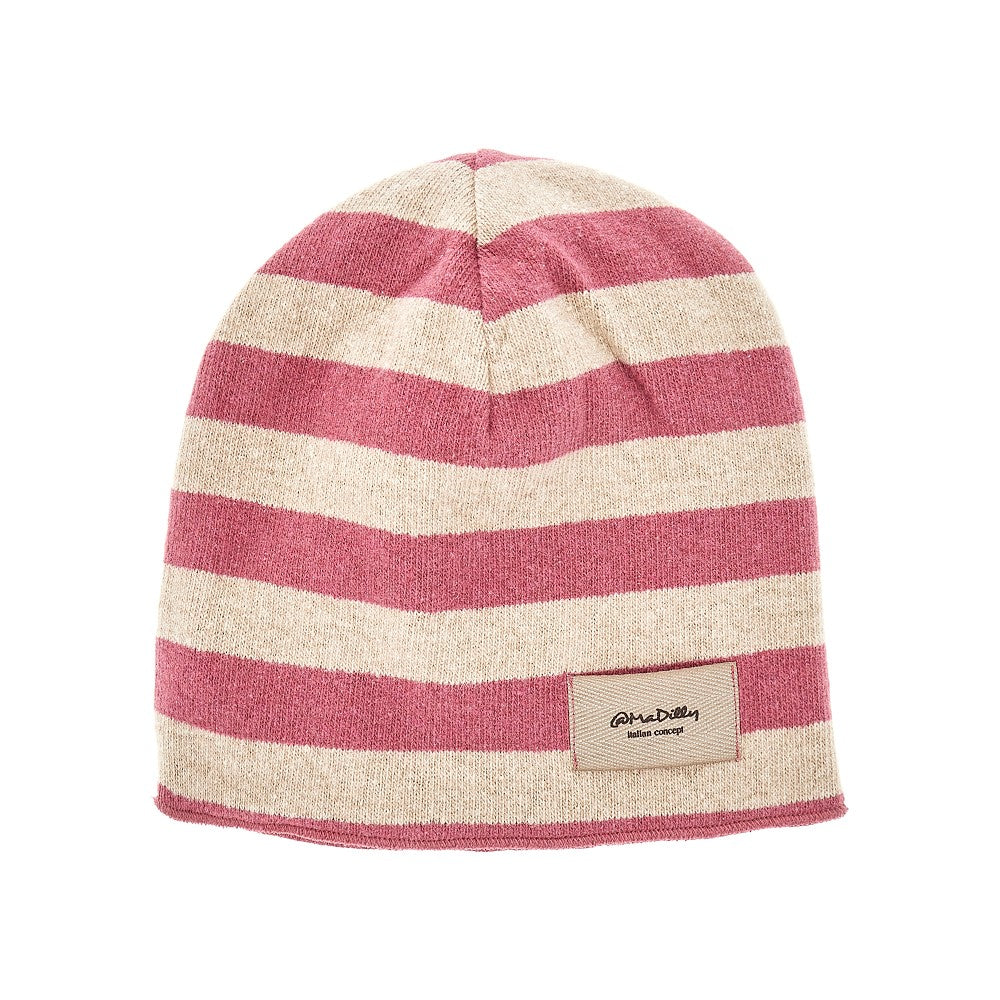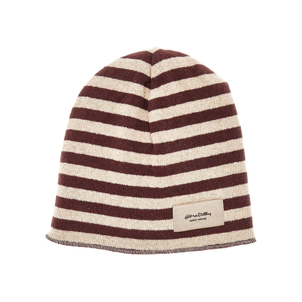 Cotton-blend beanie hat with striped motif