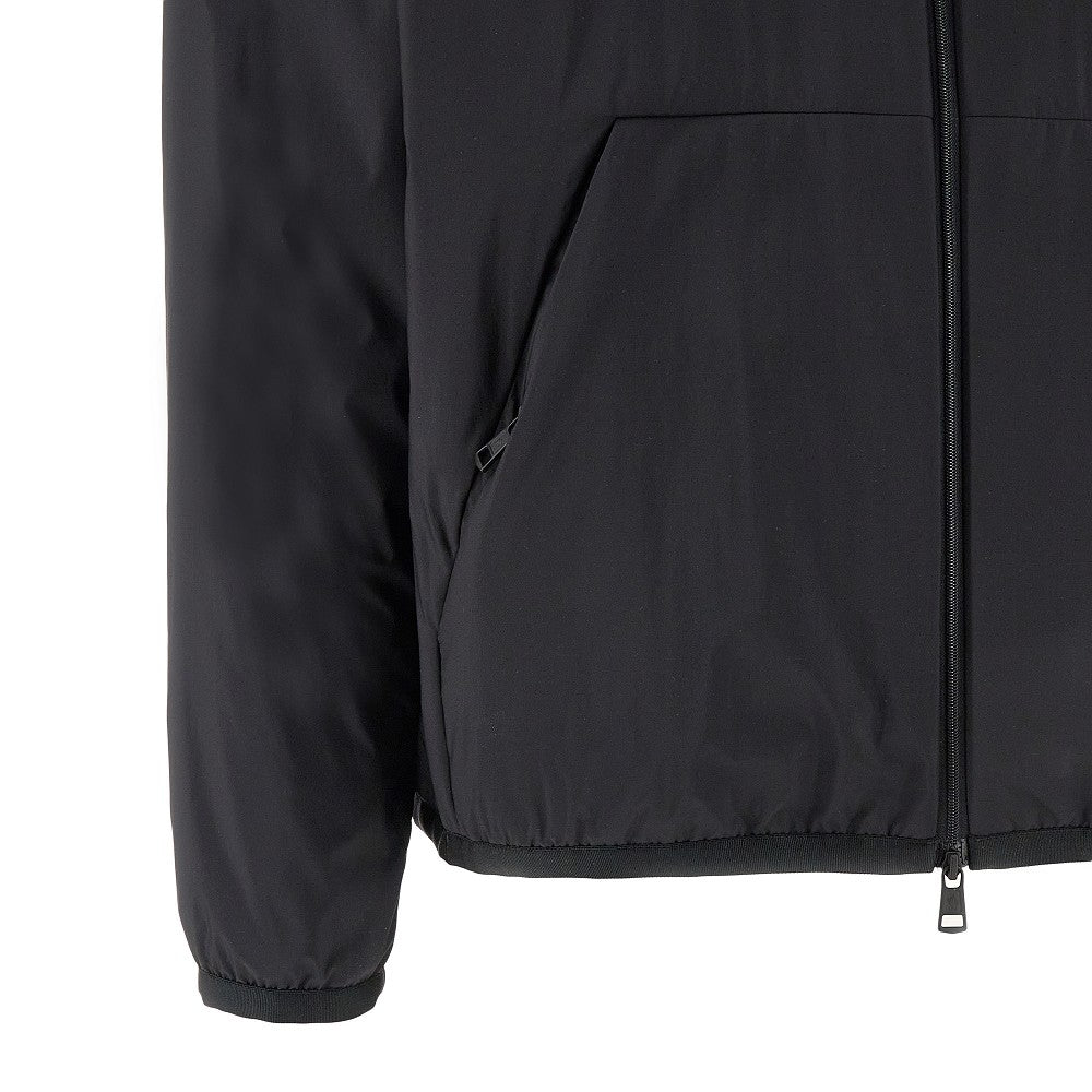 Nylon twill down jacket with logo plate