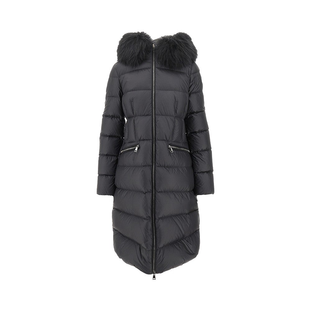 'Boedic' long down jacket with shearling trim