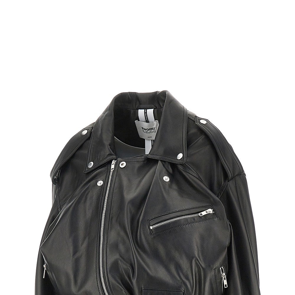 Nappa leather Balloon Fit biker jacket