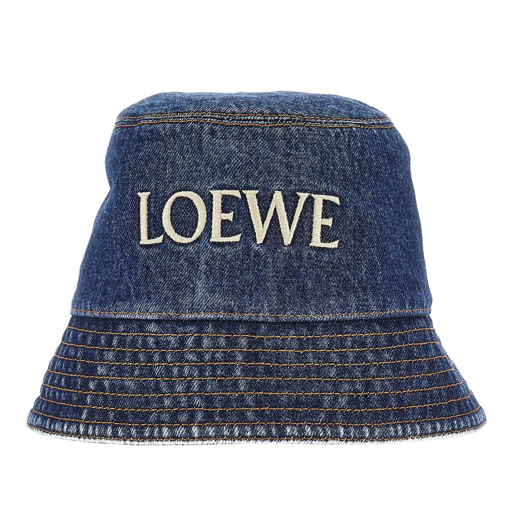 Denim bucket hat with logo embroidery