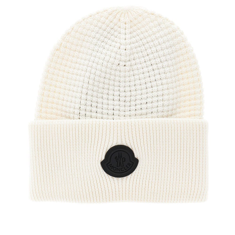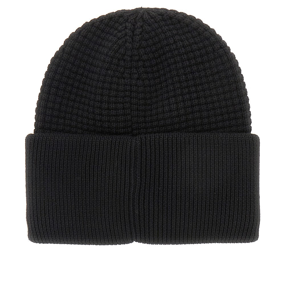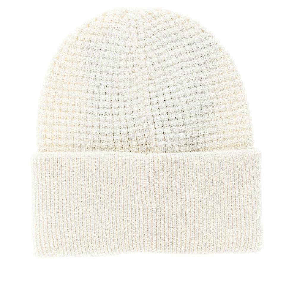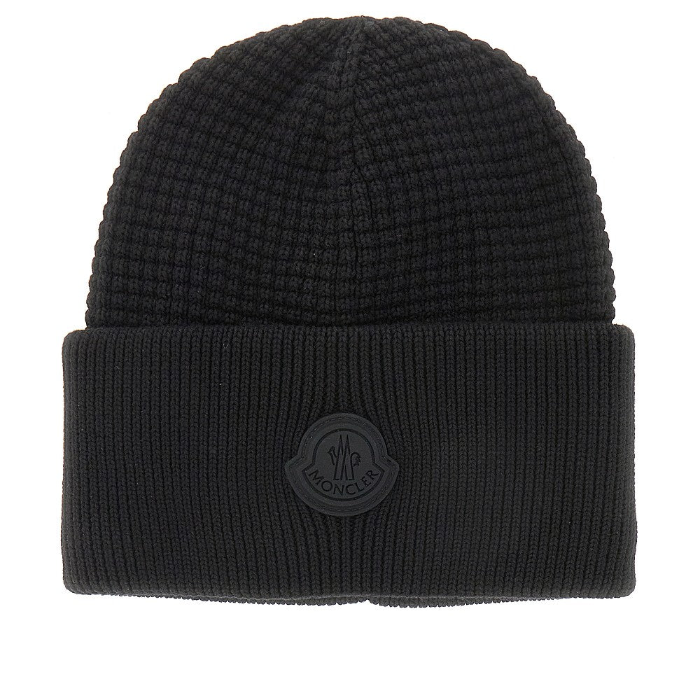 Knitted beanie hat with logo patch
