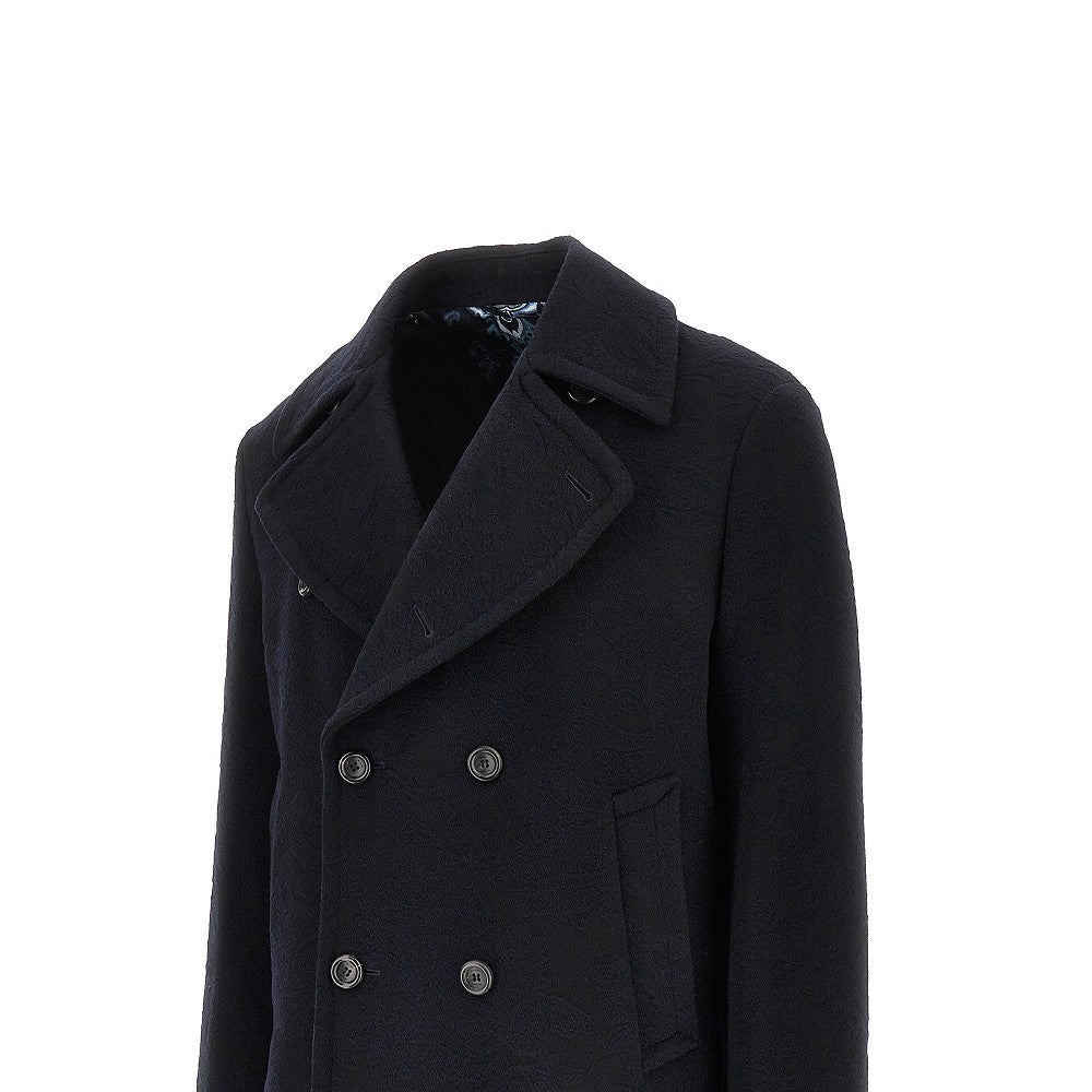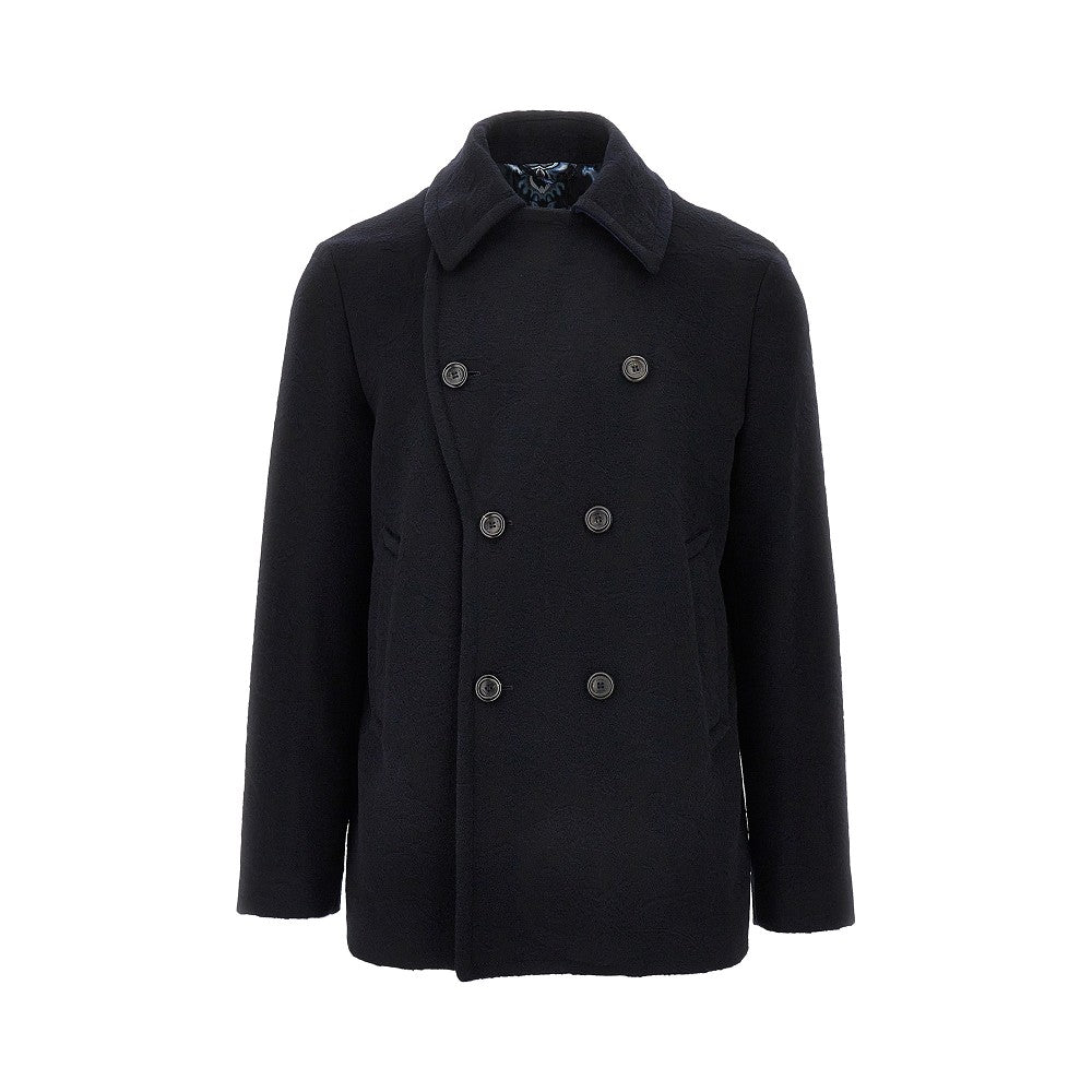 Jacquard wool double-breasted peacoat