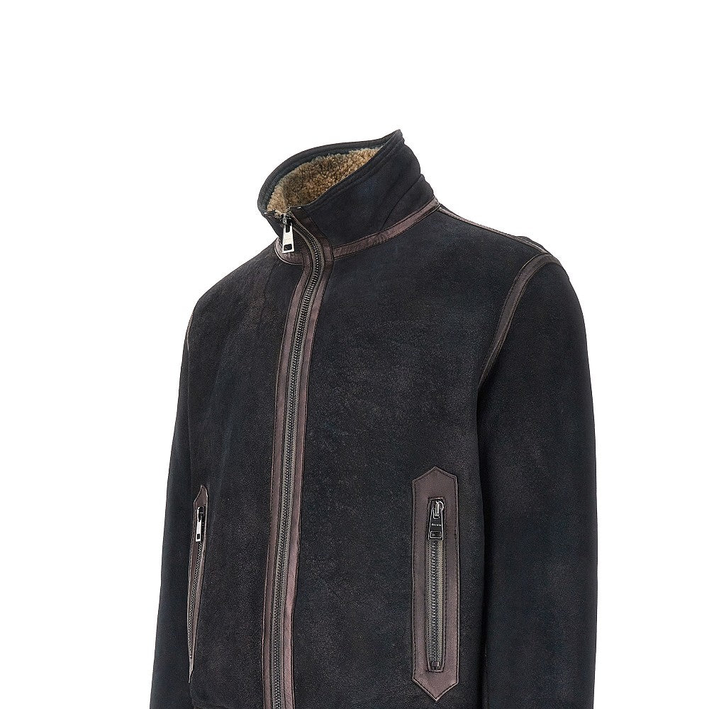Garment-dyed shearling bomber jacket