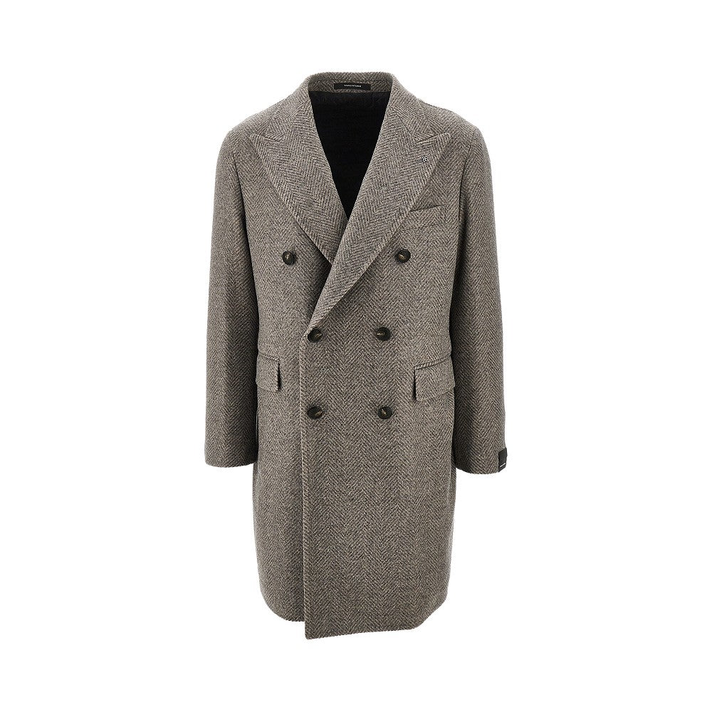 Wool herringbone double-breasted coat