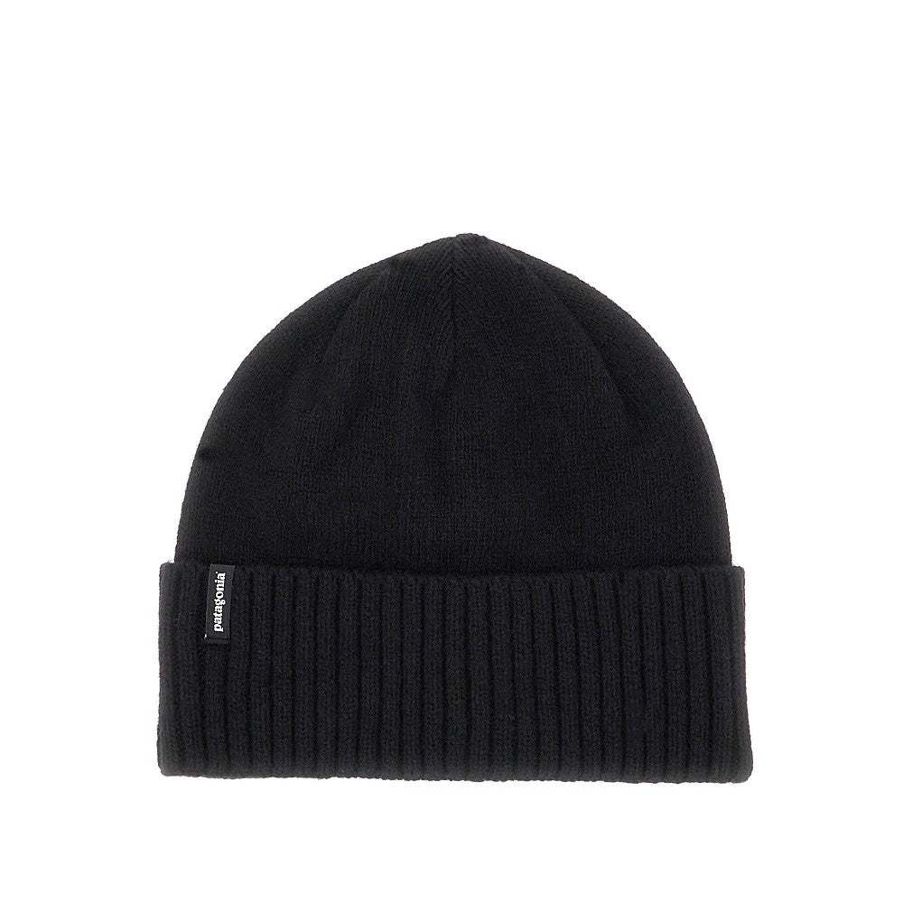 Beanie hat made from warm recycled wool blend yarn, featuring ribbed cuffs with fabric logo label on the side.