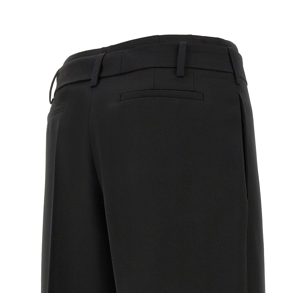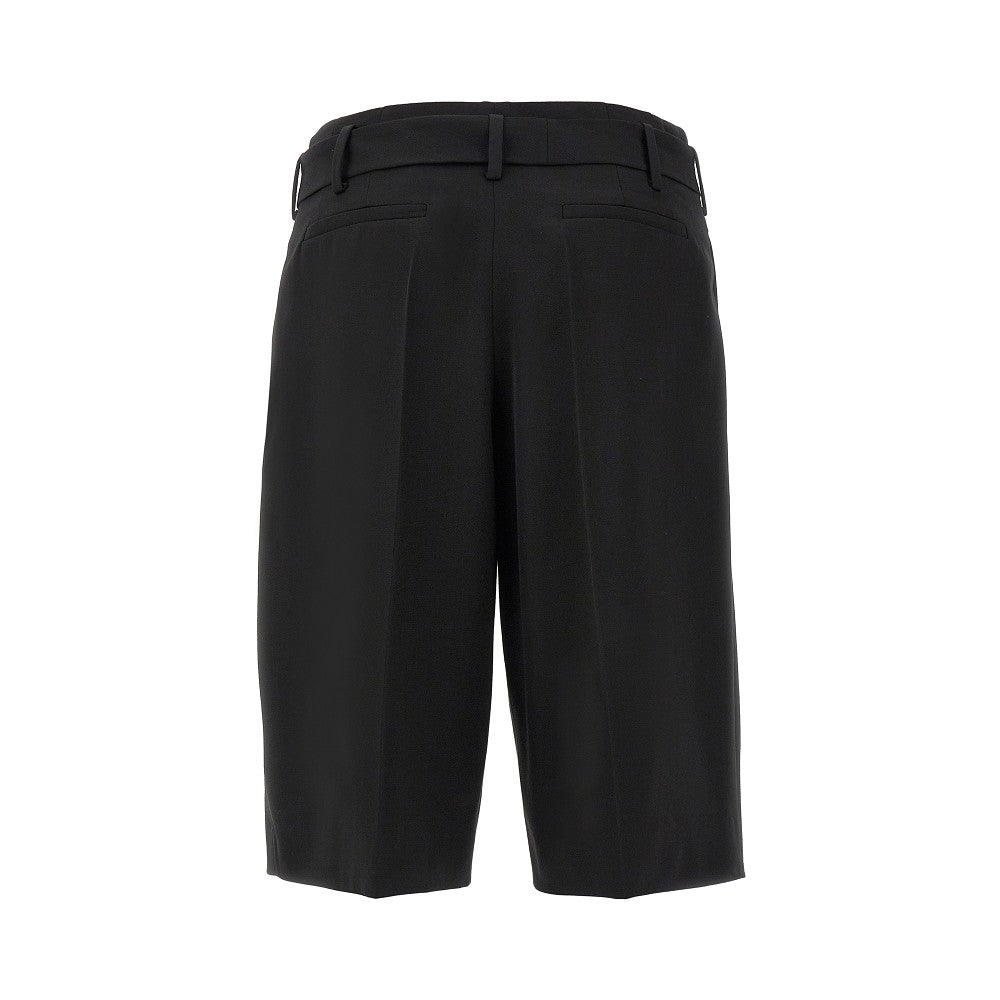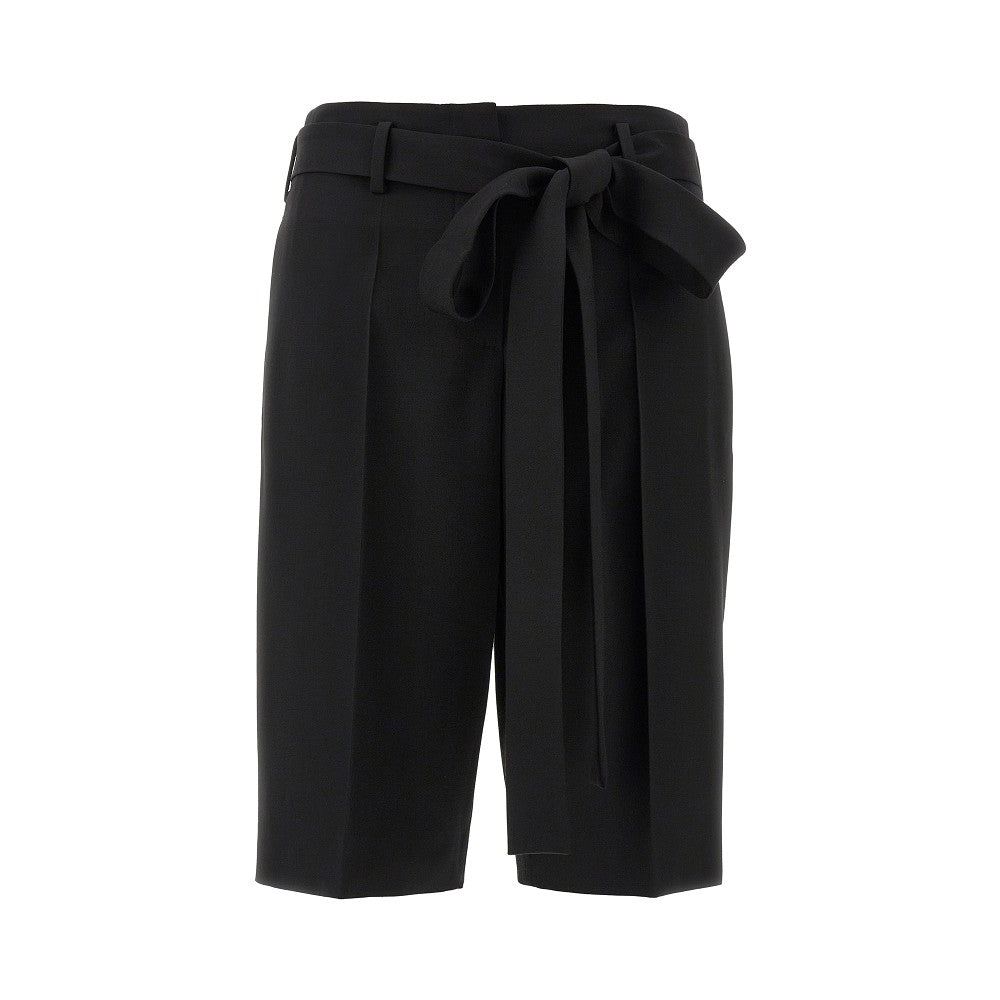 Shorts made from pure wool gabardine, equipped with self-tie matching belt. Belt loops and concealed zip closure on front. Side and rear welt pockets. Straight and slightly wide leg with ironed middle pleat. Regular fit.