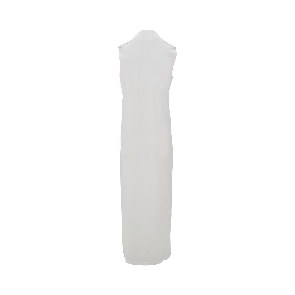 Sleeveless long dress made from cotton jersey, featuring rolled fabric detail on the shoulders. Boat neck. Straight and regular silhouette. Pull-on design.