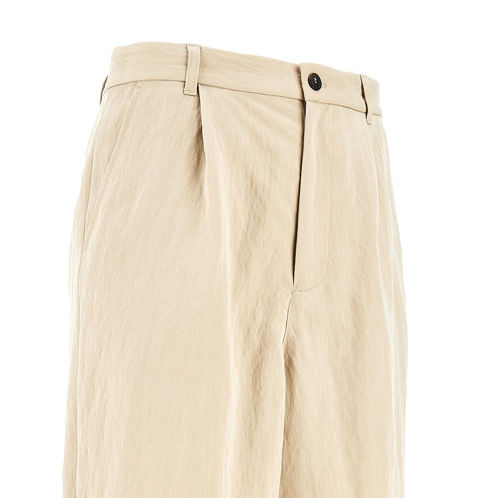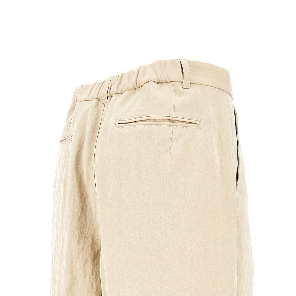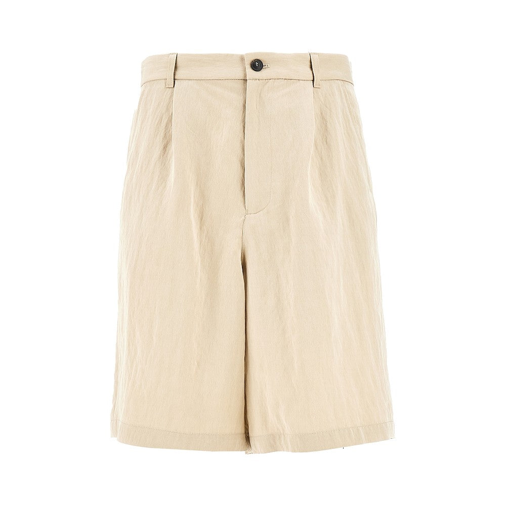 Shorts made from soft lyocell-blend twill, featuring wide and straight leg with front dart. Waist with elasticated back, belt loops, zip fly and button closure. Side slanted pockets and rear welt ones. Regular fit.