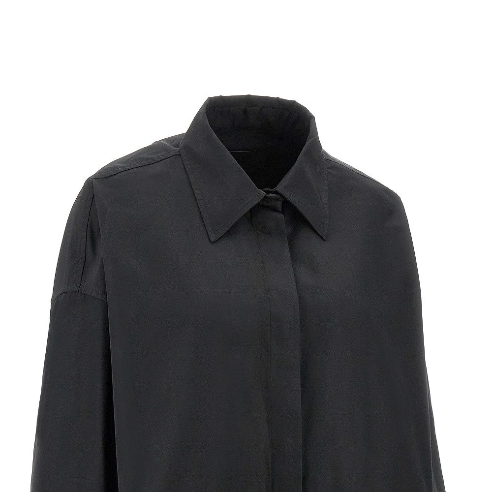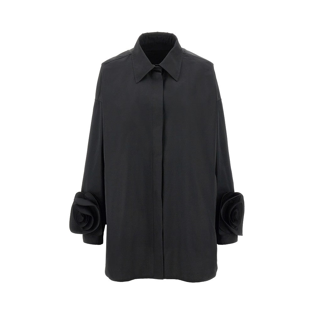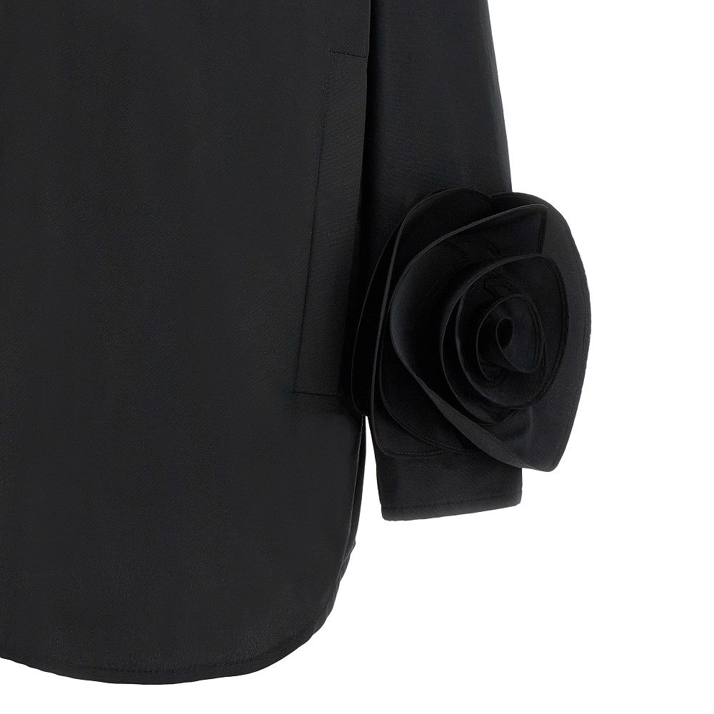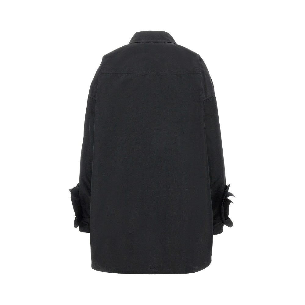 Overshirt made from cotton-blend Micro Faille, featuring fabric 3D roses appliques on the cuffs. Classic pointed collar, concealed press-studs closure, side welt pockets, cuffs with concealed press-stud and rounded bottom hem. Oversized silhouette.