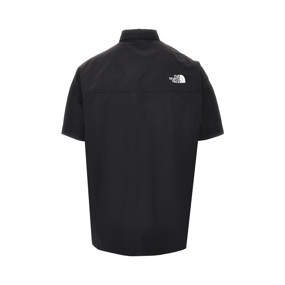 Short-sleeved shirt made from partially recycled nylon, featuring chest patch pockets in mesh with velcro flap and webbing tab with D-ring. Logo embroidery on the chest, classic pointed collar, front press-studs closure and side splits at bottom. Straight and regular cut.