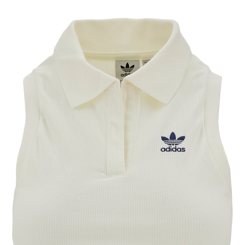 Sleeveless cropped polo shirt made from stretch cotton-blend ribbed jersey, enriched with contrasting logo embroidery on the chest. Micro ribbed collar. Slim fit.