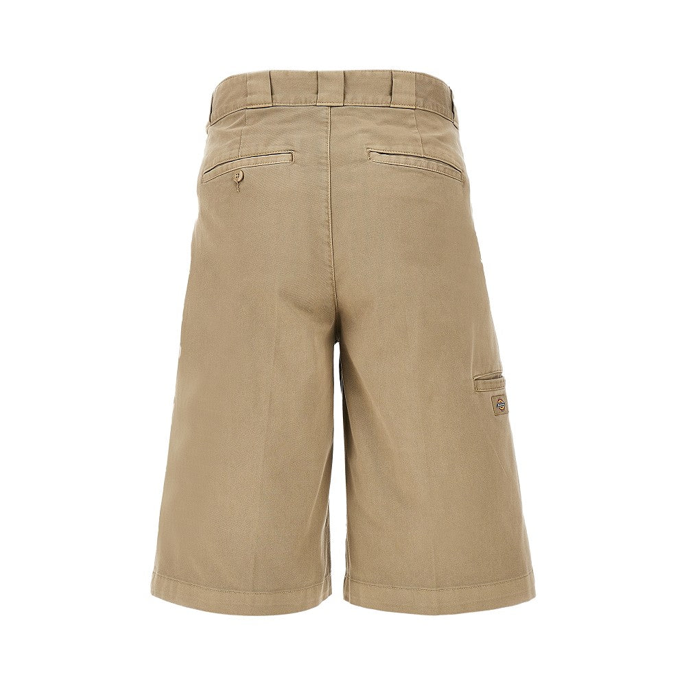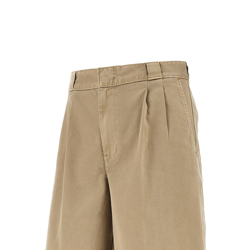 Shorts made from stretch cotton-blend twill, featuring relaxed fit and wide leg with double dart. Belt loops, zip fly and concealed hook and button closure. Side slanted pockets and rear welt ones. Logo label at left leg bottom and o the back.