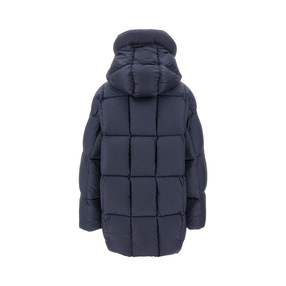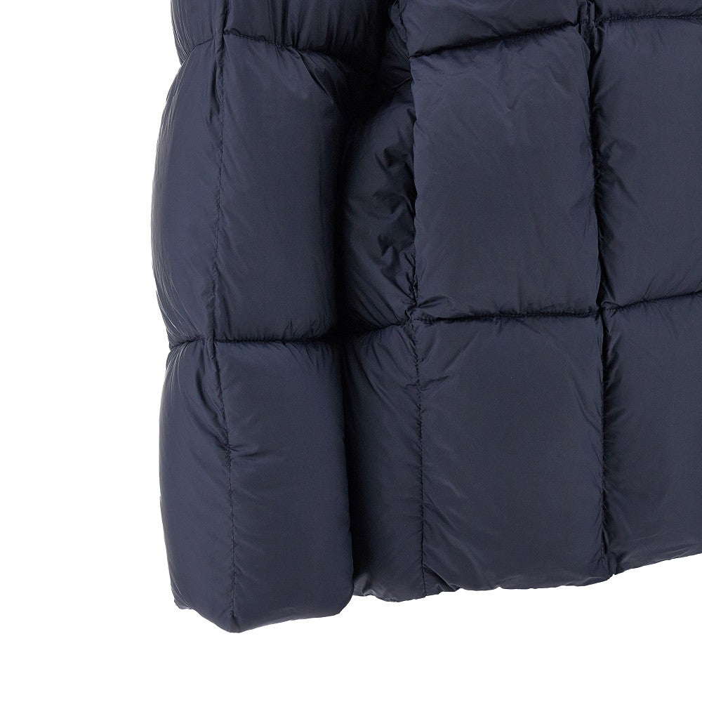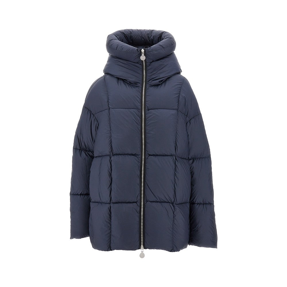 Wendy down jacket made from soft lightweight nylon with goose down padding. Two-way zip closure, hood, side welt pockets and elasticated sleeves hem. Loose fit and hip-length.