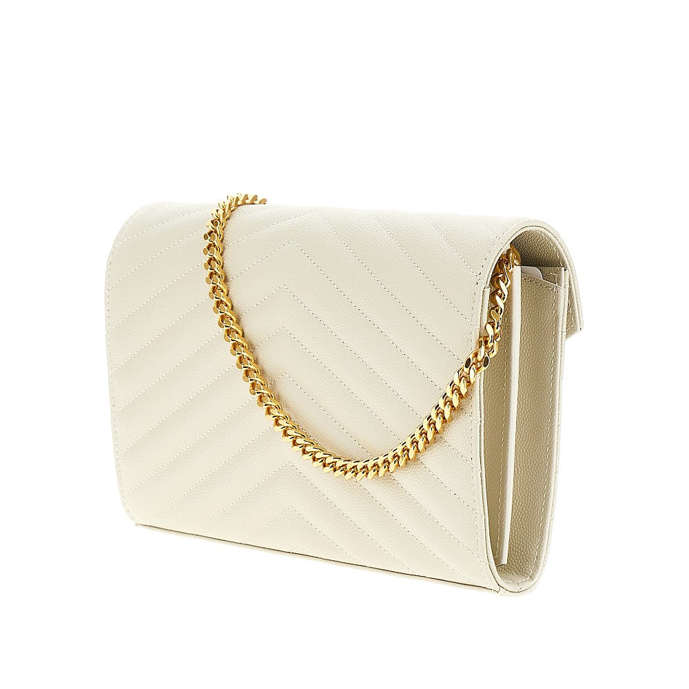 Grained leather clutch with chain